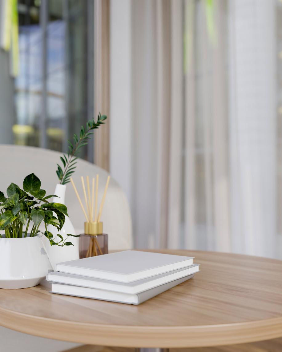 Predlaže da na stol složite tri ili pet knjiga, dodate vazu, nekoliko svijeća i ukrasni pladanj. Grupiranje tih elemenata u neparnom broju može stvoriti skladnu, ali asimetričnu kompoziciju koja u konačnici pridonosi uređenju cijele dnevne sobe.