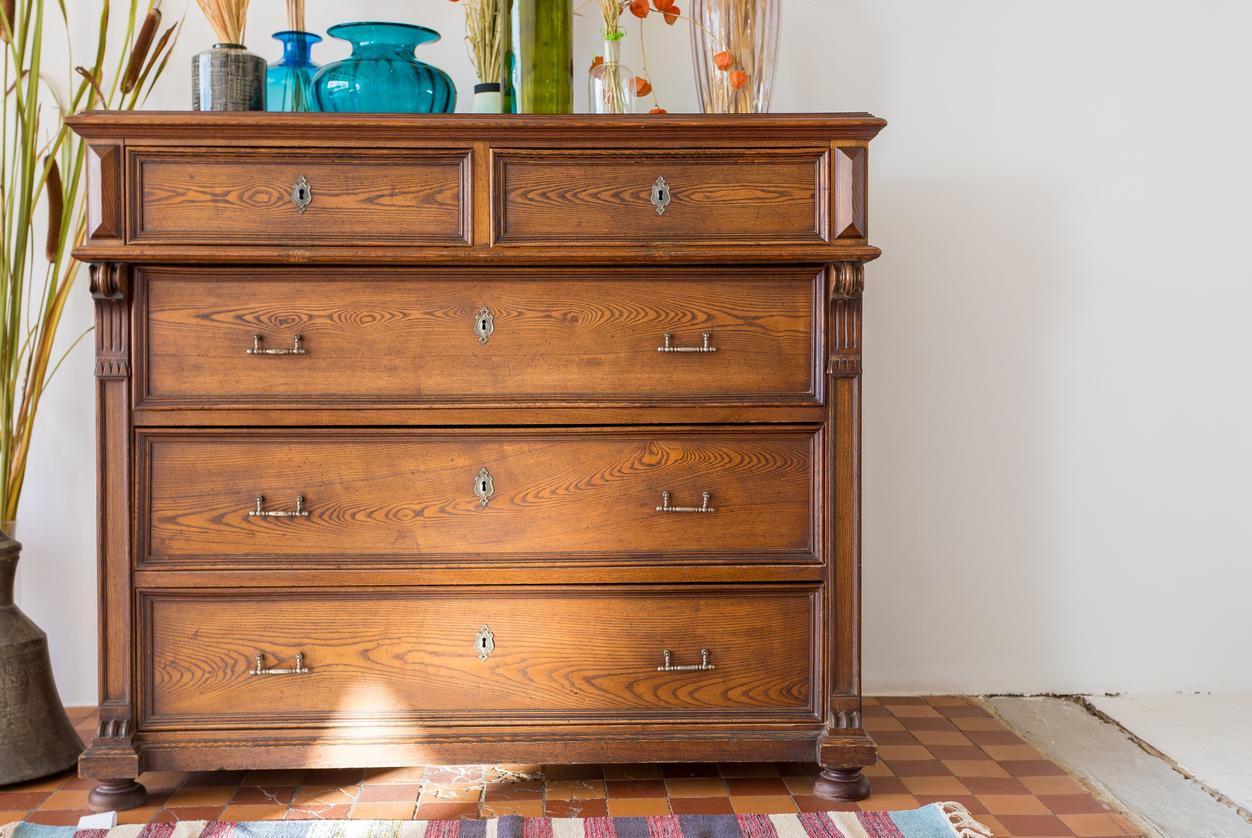 Savjetuje pripaziti na tapecirane stolice, komode, stoliće za kavu i blagovaonske stolice: proučite kvalitetu, dizajn i njihov potencijal. Stariji komadi mogu zablistati uz malo truda — uklonite lak da otkrijete prirodni drveni završetak ili ih osvježite novim slojem boje i modernim tkaninama.