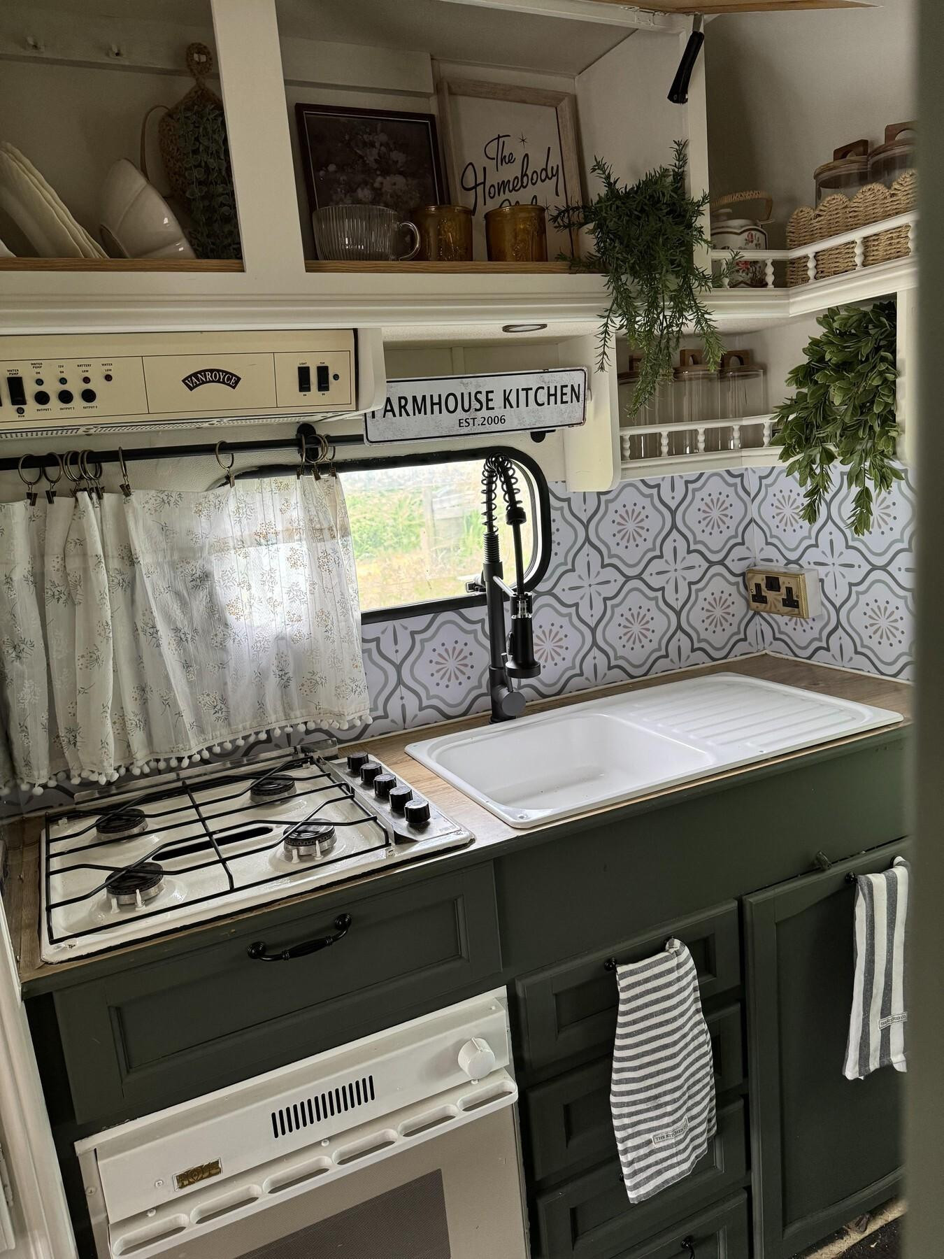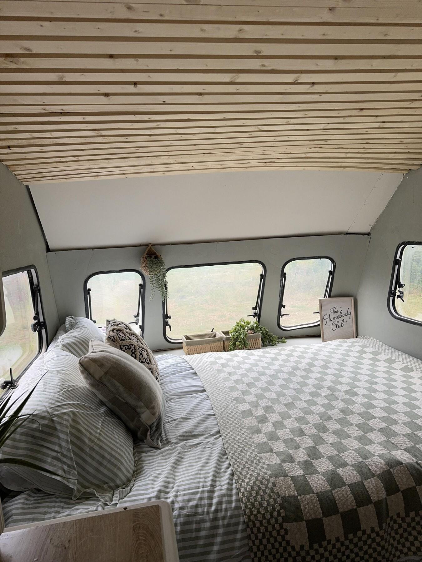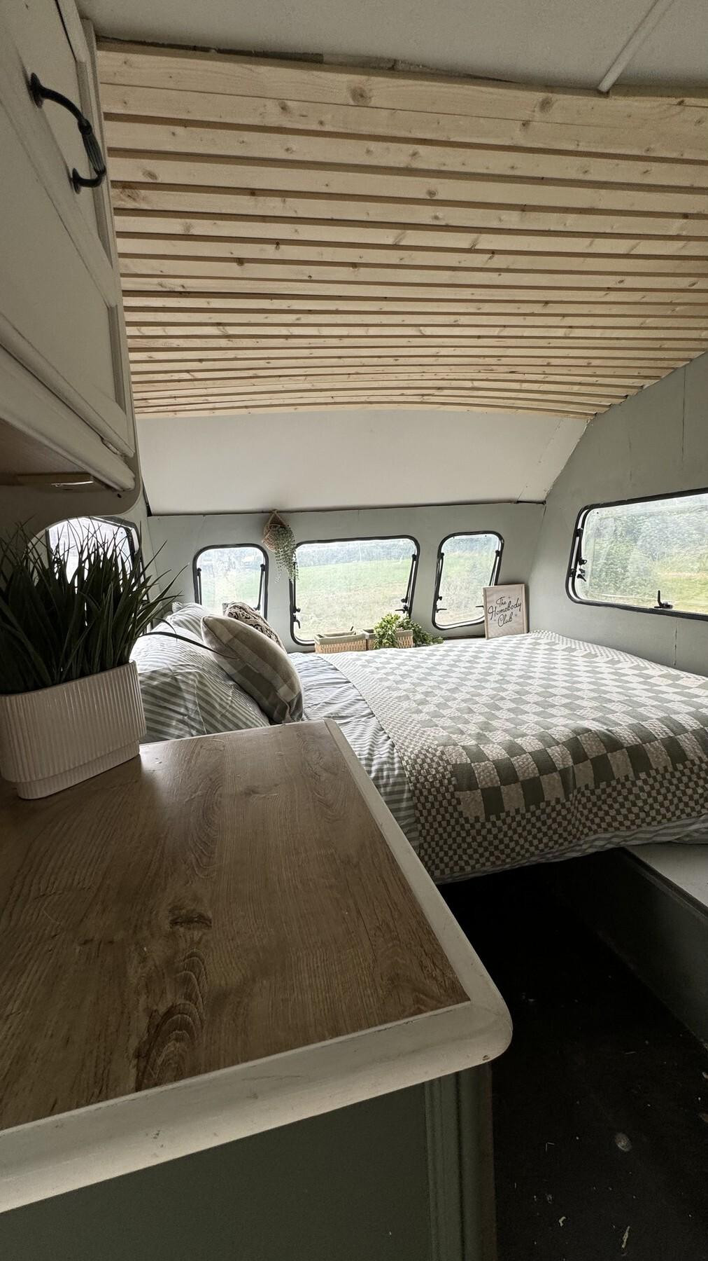 U kuhinji su postavili zidnu oblogu, novi sudoper i sve osnovne elemente. Dnevni boravak osvježen je drvenim panelima i zelenom bojom, što je prostoru dalo topao, moderan izgled. Krevet su ukrasili lampicama, a cijeli prostor sada zrači udobnošću i šarmom. Također, izvana su je obojili metalik sprejem, čime su svojoj "kampici" dali potpuno novi sjaj.