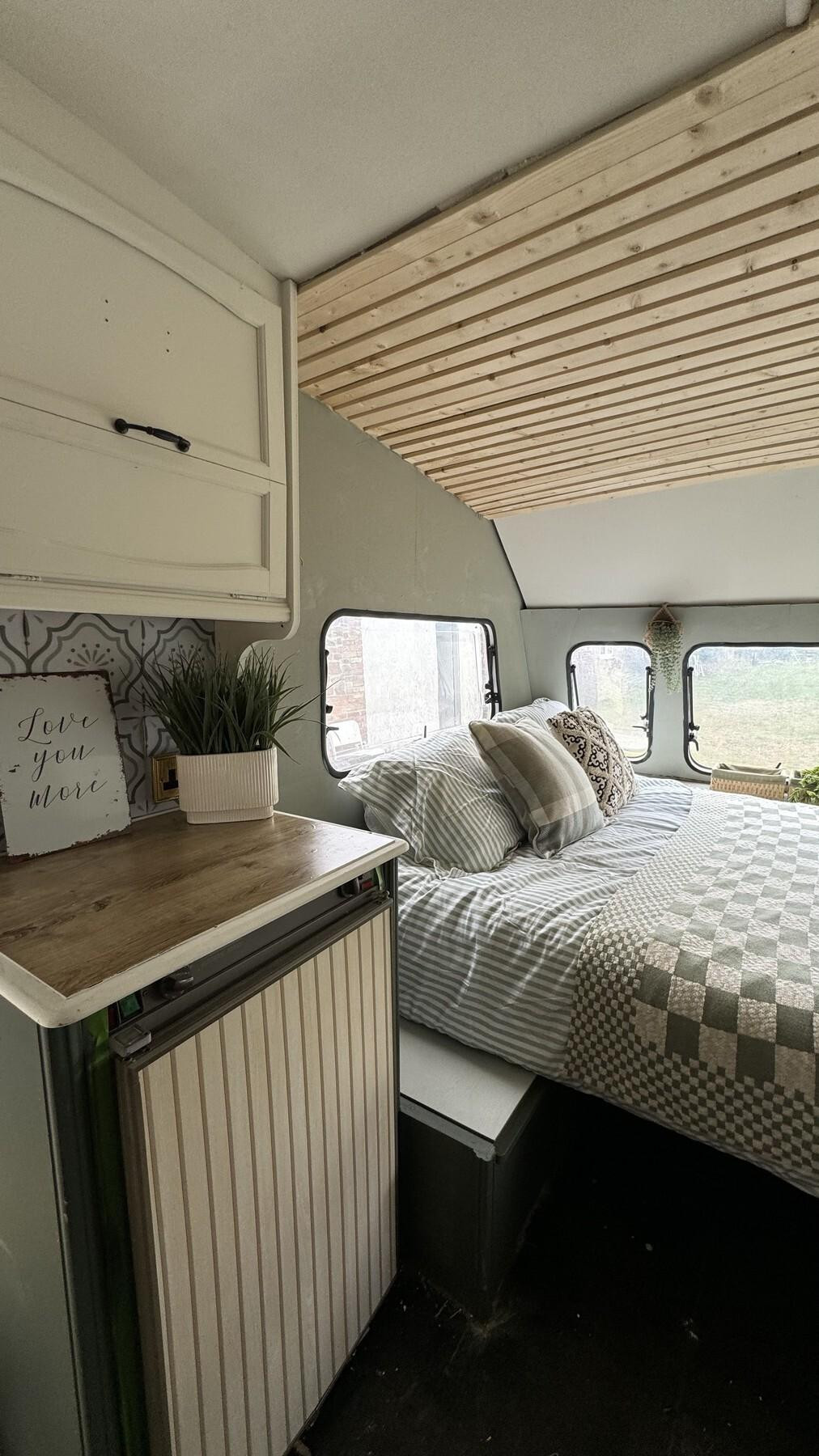 Iako oboje rade puno radno vrijeme, Hayley i Ben nisu čekali godišnji. Svaki slobodni trenutak koristili su da bi prikolicu, koju su nazvali Joyce, pretvorili u mobilni dom iz snova. Od zamjene dotrajalih dijelova, brušenja i farbanja zidova i ormarića, pa sve do uređenja interijera, par je sve radio sam.