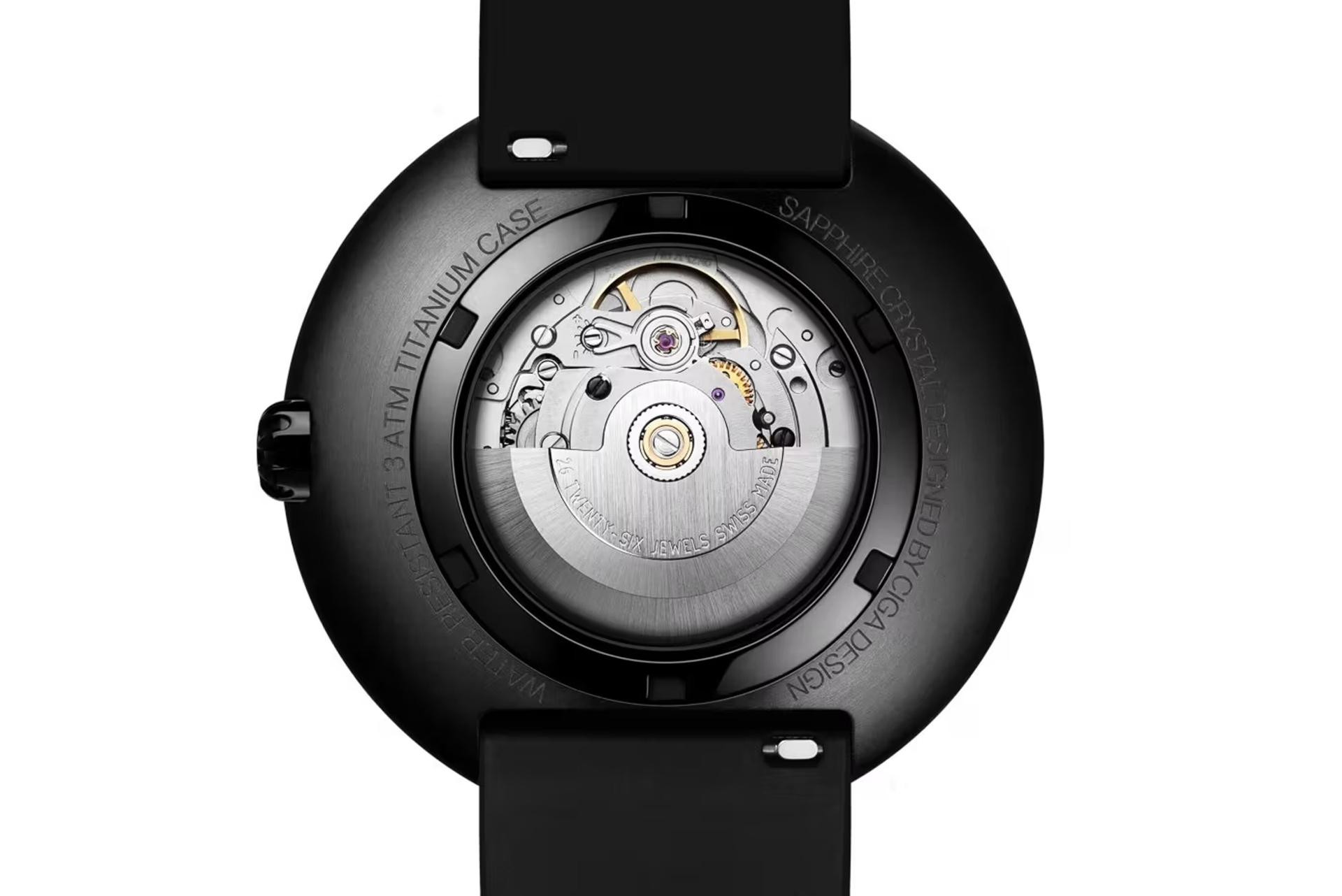 U njegovoj nutrini radi precizni švicarski automatski mehanizam CIGA CD-04-S, s frekvencijom od 28.800 vibracija na sat, 26 rubina i rezervom snage od oko 41 sat. Tehnički inovativan prikaz vremena temelji se na takozvanoj tehnologiji ‘asinkronog praćenja‘, gdje se ‘kazaljke‘ ne ponašaju kao na običnom satu – satni prsten se rotira pod kutem od 30 stupnjeva, dok minutni prsten izvodi puni krug plus dodatnih 30 stupnjeva (ukupno 390 stupnjeva). Sat dolazi s crnim remenom od fluorne gume s preklopnom kopčom, a pakiran je u kutiju izrađenu od recikliranog papira, uz poruku koju je osobno potpisao Label Noir.