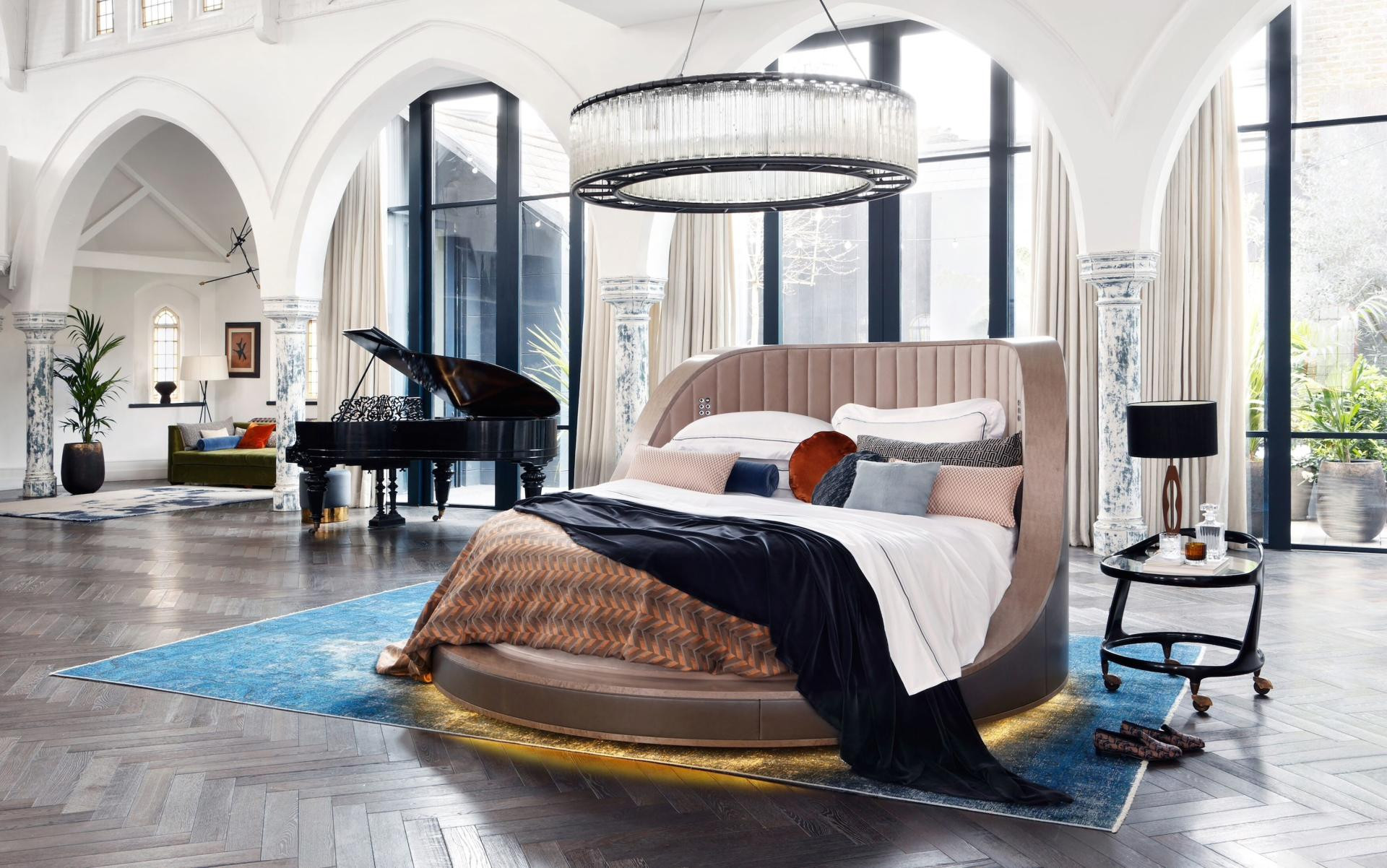 Još jedan ekstravagantan primjer dolazi u obliku okruglih kreveta koji se rotiraju. Osim što mijenjaju percepciju prostora u spavaćoj sobi, ovi kreveti se okreću kako bi korisnik mogao mijenjati pogled – primjerice, prema prozoru ujutro, a prema zidu s televizorom navečer. Neki modeli čak uključuju senzor svjetla i automatski se okreću prema izvoru prirodne svjetlosti kako bi korisnik postepeno ustajao s izlaskom sunca.