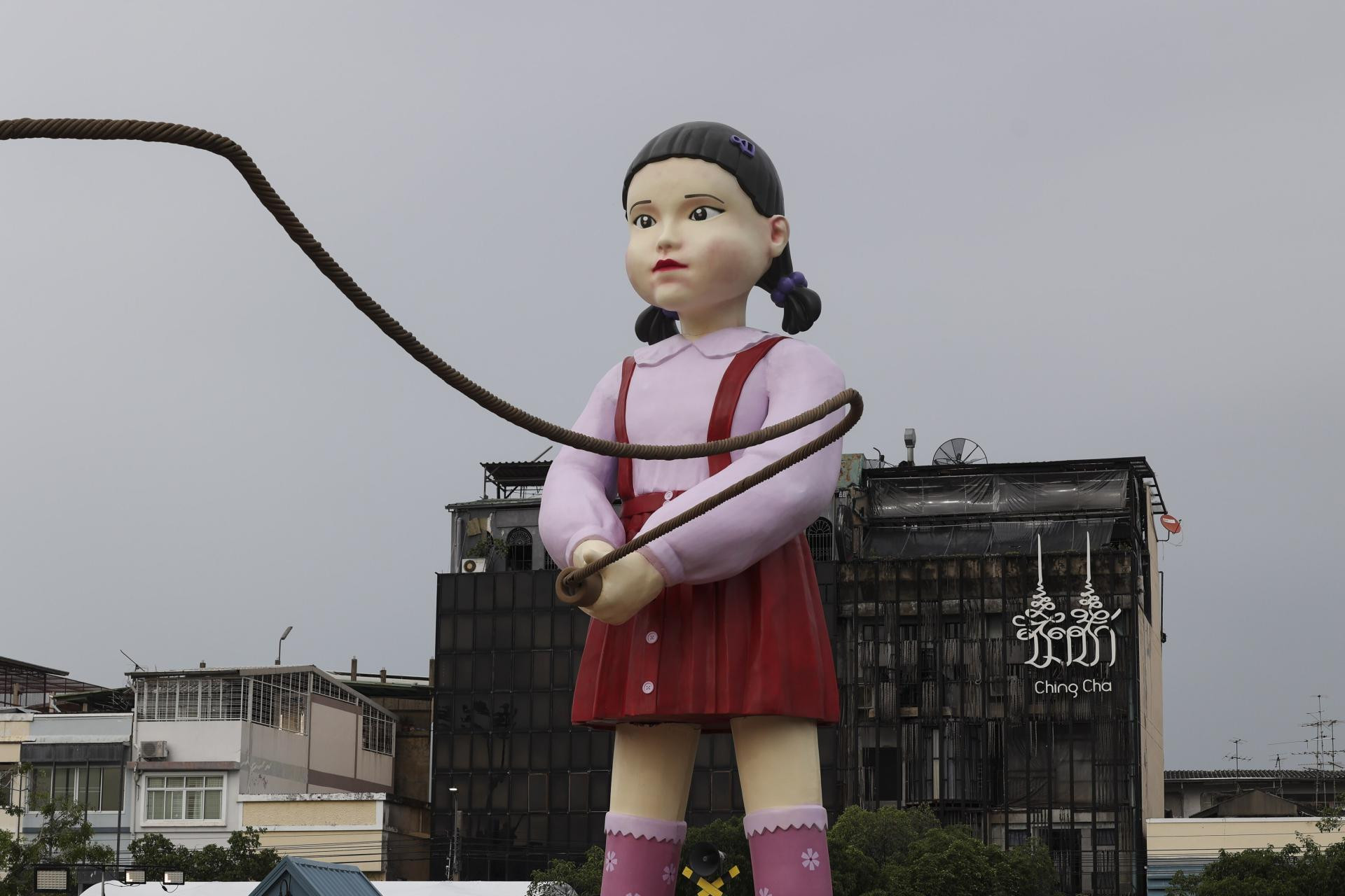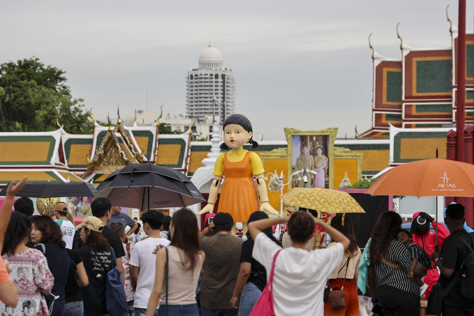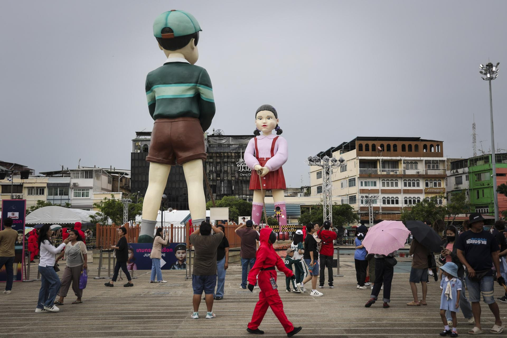Najpoznatija među njima, lutka Young-hee iz epizode ‘Crveno svjetlo, zeleno svjetlo‘, visoka gotovo 5 metara, postavljena je ispred trgovačkog centra CentralWorld, dok su ostale figure iz serije raspoređene po gradskim punktovima kao što su Central Ladprao i Central Bangna, prizivajući svojom pojavom atmosferu nalik onoj iz distopijskog hit serijala.