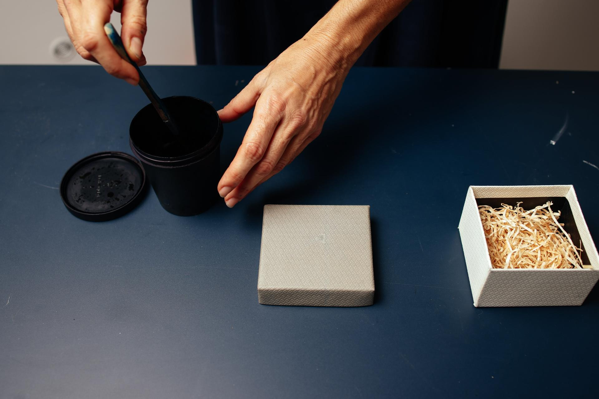 Rad se suši prirodno, od nekoliko sati, ovisno o debljini kutije. Sušenje se može ubrzati sušilom za kosu