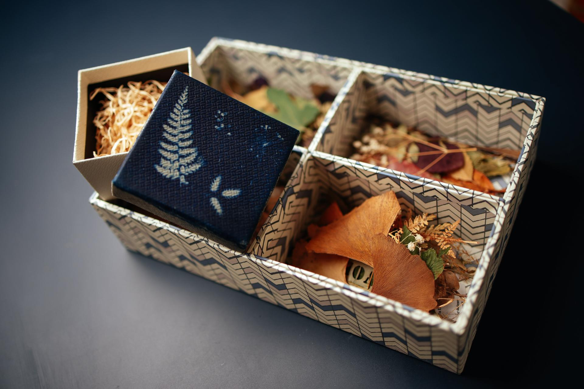 Božić je vrijeme darivanja, ali i stvaranja uspomena kroz male rituale izrade poklona. Umjesto klasičnog omota, zašto ne biste sami oblikovali ukrasnu kutiju koja će već na prvi pogled nositi priču? U ovom DIY projektu spojit ćemo čaroliju blagdana s plavom estetikom cijanotipije – stare fotografske tehnike koja na poklopcu kutije ostavlja otisak prirode u nijansama indigo plave.