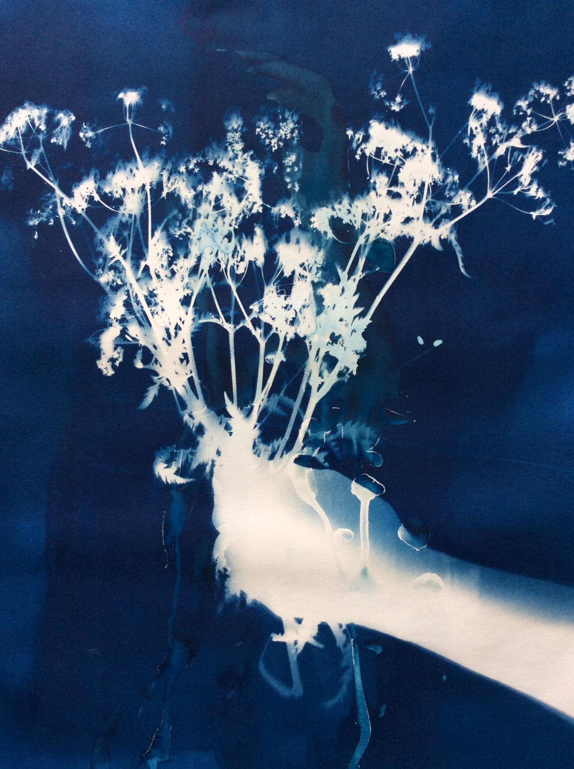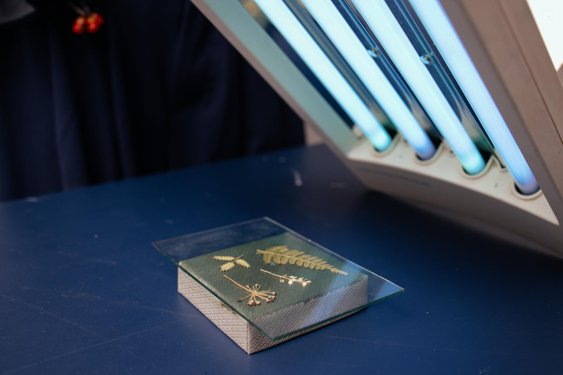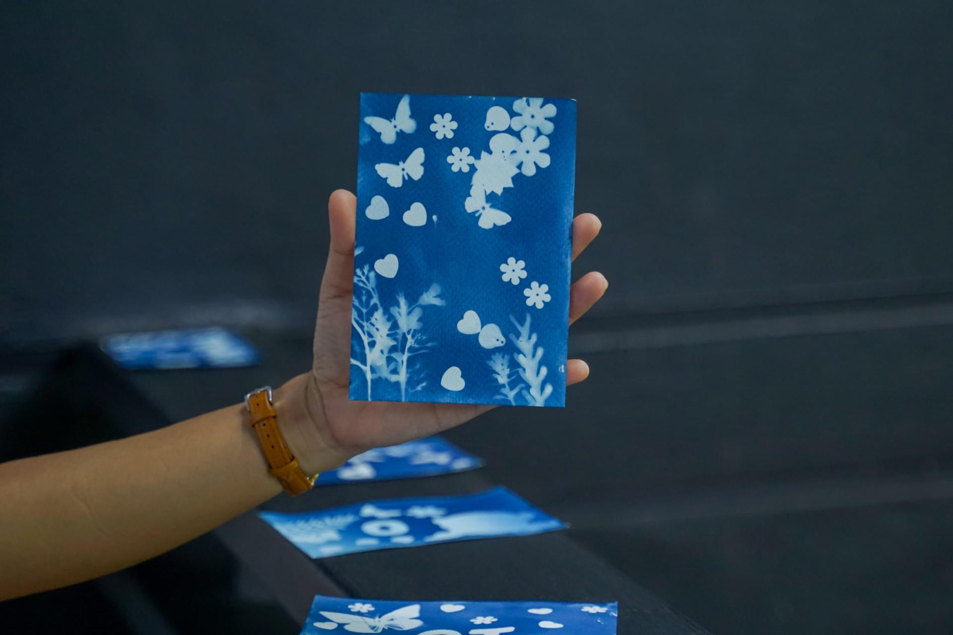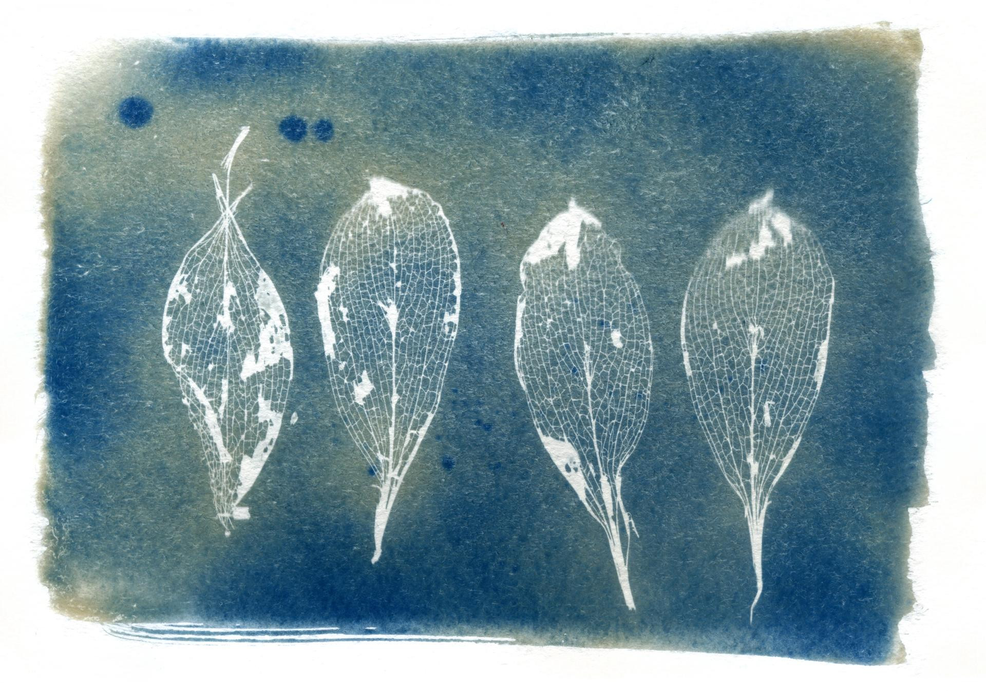 Izlaže se sunčevoj ili UV svjetlosti, biljke blokiraju svjetlost i ostavljaju bijele siluete na plavoj pozadini. Na suncu: 5-10 min. Pod UV lampom: do 10-15 minuta