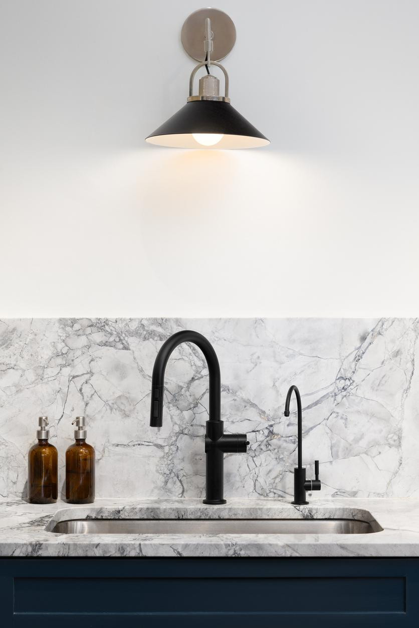 Paul McManus iz McManus Kitchen & Bath dodaje: „Mramor je prihvatljiv samo ako volite njegov ‘karakter’ koji se razvija tijekom vremena ili ste spremni ulagati u redovito obnavljanje svakih nekoliko godina.“