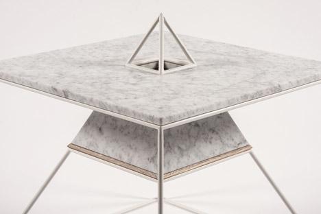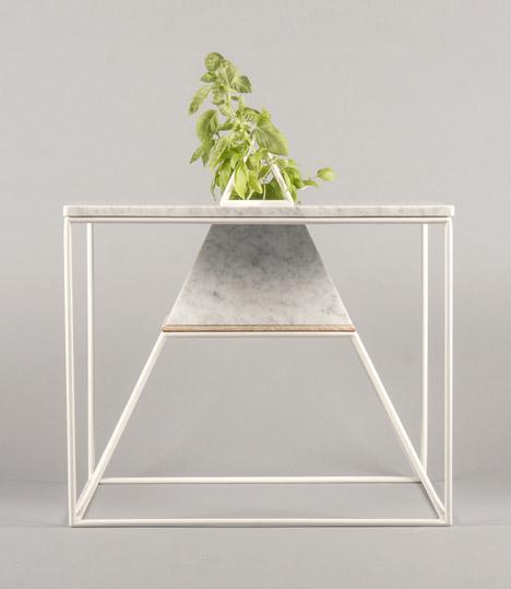 Sljedeći mramorni element s rupom u sredini nalazi se na vrhu lonaca i čini stol, a malena metalna piramida pokriva rupu na ploči. Piramida je dizajnirana za zaštitu biljke od drugih predmeta na stolu, kao što su šalice ili knjige.