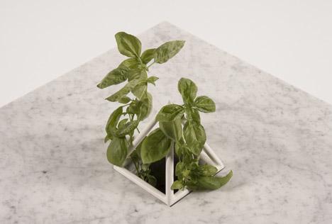Glavna posebnost stola jest to da su biljke zasađene u piramidalnom segmentu koji se nalazi ispod ploče i rastu kroz četvrtastu rupu na središtu stola. Stol se sastoji od niza komponenata, počevši od bijelog metalnog okvira u obliku trapezoidne kocke iznutra. Hrastova ploča koja se nalazi na trapezoidu pruža potporu mramornim loncima koji nastavljaju linije unutarnjeg dijela okvira.