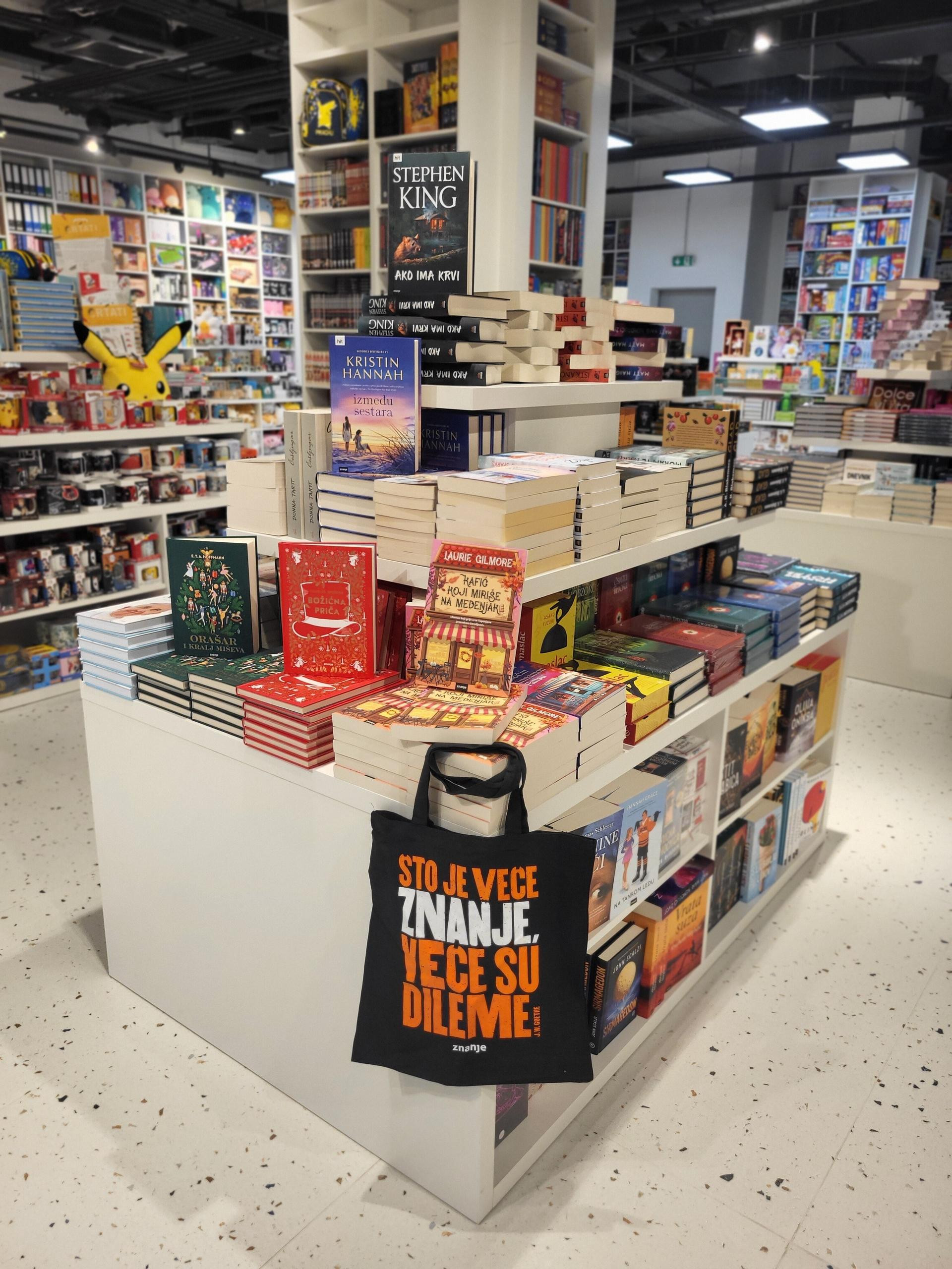 Prostor knjižare prostire se na raskošnih 300 kvadrata, ispunjenih bogatim izborom domaćih i stranih knjiga, slikovnica i publicistike, kao i raznovrsnim darovnim programom, društvenim igrama, papirnicom te pažljivo odabranim proizvodima za sve generacije. Nova knjižara zamišljena je kao prostor u kojem se knjige listaju, biraju i pronalaze bez žurbe.