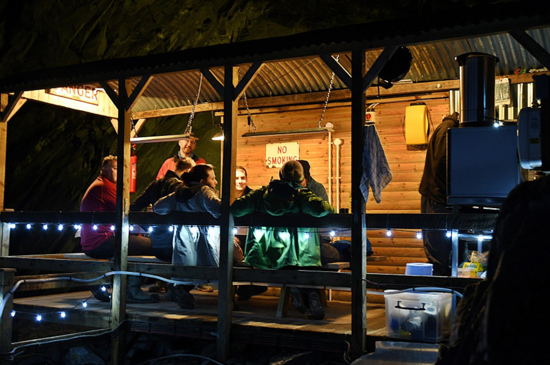Velika čelična vrata znak su da ste došli do kraja puta; iza njih se kriju četiri drvene kabine s po dva kreveta i romantični grotto, uklesan u stijenu. Nakon tople dobrodošlice, uz tradicionalni se čaj poslužuje i ekspedicijska večera. Možete birati mesno, vegetarijansko ili vegansko jelo, uz salatu, kruh, grickalice i slatkiše. Čak ni tako duboko ispod zemlje turisti neće biti zakinuti za čuda modernog života jer kolibe i grotto imaju električnu energiju, a osigurana je i wi-fi mreža (putem kilometar dugog kabla).