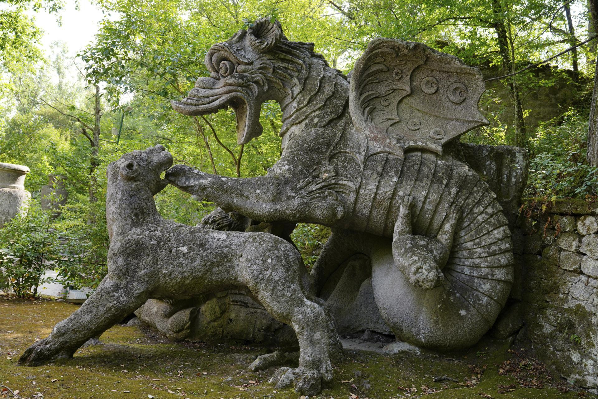 Sacro Bosco, poznat i kao ‘Park čudovišta‘, jedinstveni je spomenik renesansne maštovitosti, ali i boli i simbolike. Za razliku od tipičnih renesansnih vrtova poput onih u Firenci ili Tivoliju, koji su oblikovani po strogoj simetriji, Sacro Bosco nastao je kao potpuna suprotnost. Njegov tvorac, vojvoda Pier Francesco Orsini, zvan Vicino, dao ga je urediti u 16. stoljeću, u čast svoje prerano preminule supruge Giullie Farnese. U trenutku tuge i gubitka, Orsini nije tražio utjehu u klasičnoj harmoniji, već je naručio nešto potpuno suprotno: labirint kamenih čudovišta i deformiranih figura koje izgledaju kao da su ispali iz noćne more.