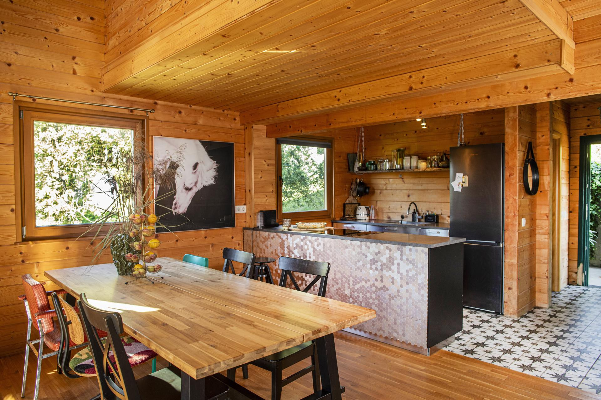 Sam prostor ima nekoliko funkcionalnih prostorija, prvenstveno unutar The Loop Lab studija, u kojem su otišle i "korak dalje" te su dio drvenog namještaja izradile vlastitim rukama. I iako gotovo svaki metar unutrašnjosti odiše kreativnošću u kojoj je ugodno provoditi vrijeme za sva osjetila, one ga u toplijem dijelu godine uglavnom provode na terasi koja ih svakog dana "daruje" prekrasnim pogledom na livade i šumu, koji im svakim danom potvrđuje da je selidba u Petravec bila dobra odluka.