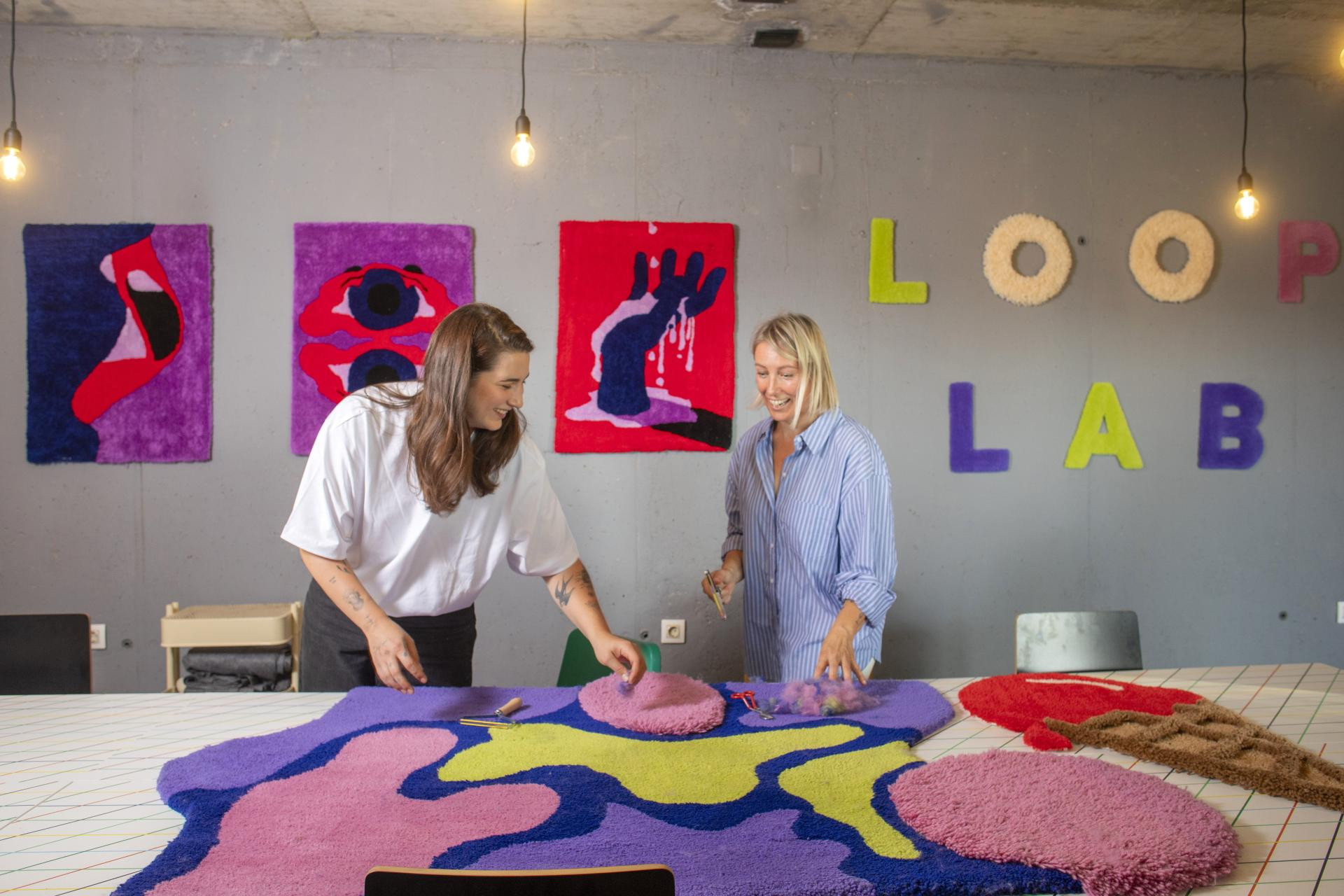 Pohađale su školu izrade vunenih tepiha tufting metodom u Amsterdamu, a zatim eksperimentirale kod kuće istražujući različite teksture i boje. Tepisi su im se, pričaju nam, činili savršenim "medijem" za prijenos svojih ideja jer spajaju funkcionalnost i umjetnost. Tako kroz boje, teksture i oblike izražavaju svoj kreativni svijet, a istovremeno stvaraju komade koji unose toplinu i karakter u prostor.