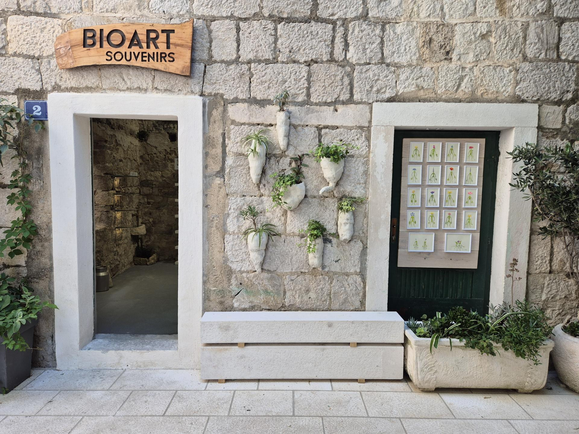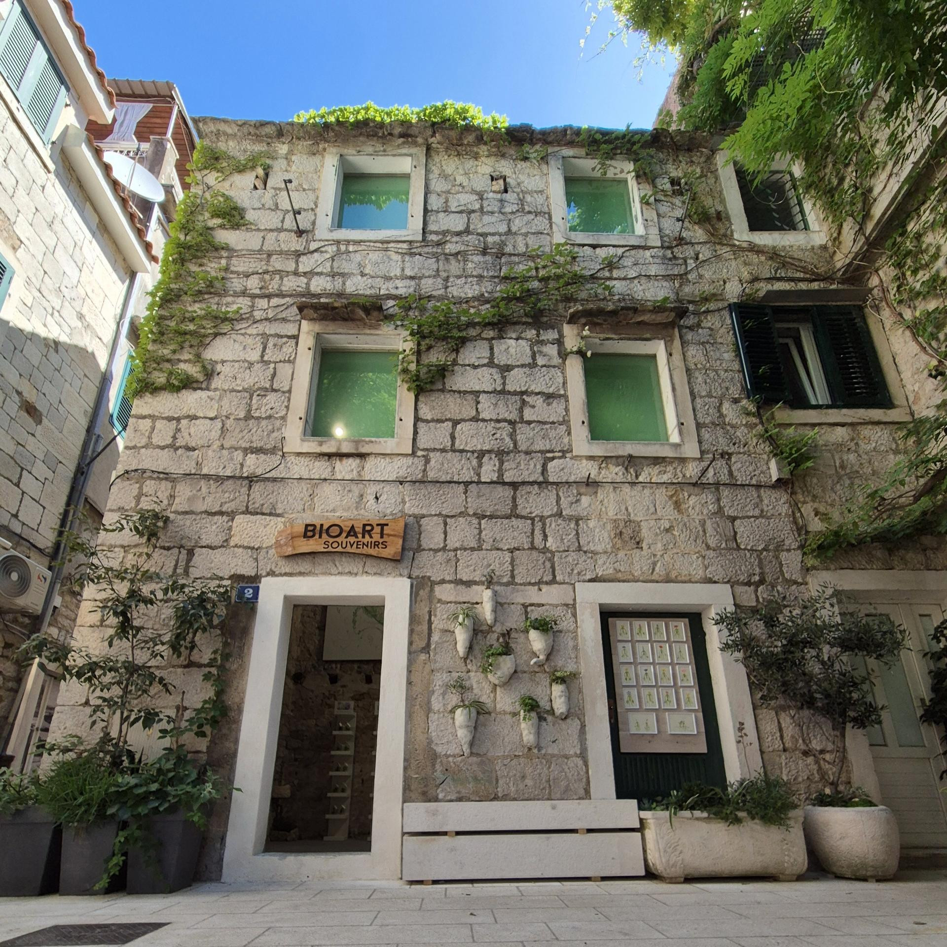 Zanimljivo je i kako je uređen interijer. Smješten u staroj zgradi kojoj su gornji katovi uklonjeni kako bi se stvorio jedinstveni prostor s biljkama koje dijelom rastu u zidovima, atelje odiše spojem tradicije i inovacije. Prošle godine posjetili smo njegov inspirativni dom, čije okružje sada postaje središte bioart stvaralaštva u srcu Dalmacije.