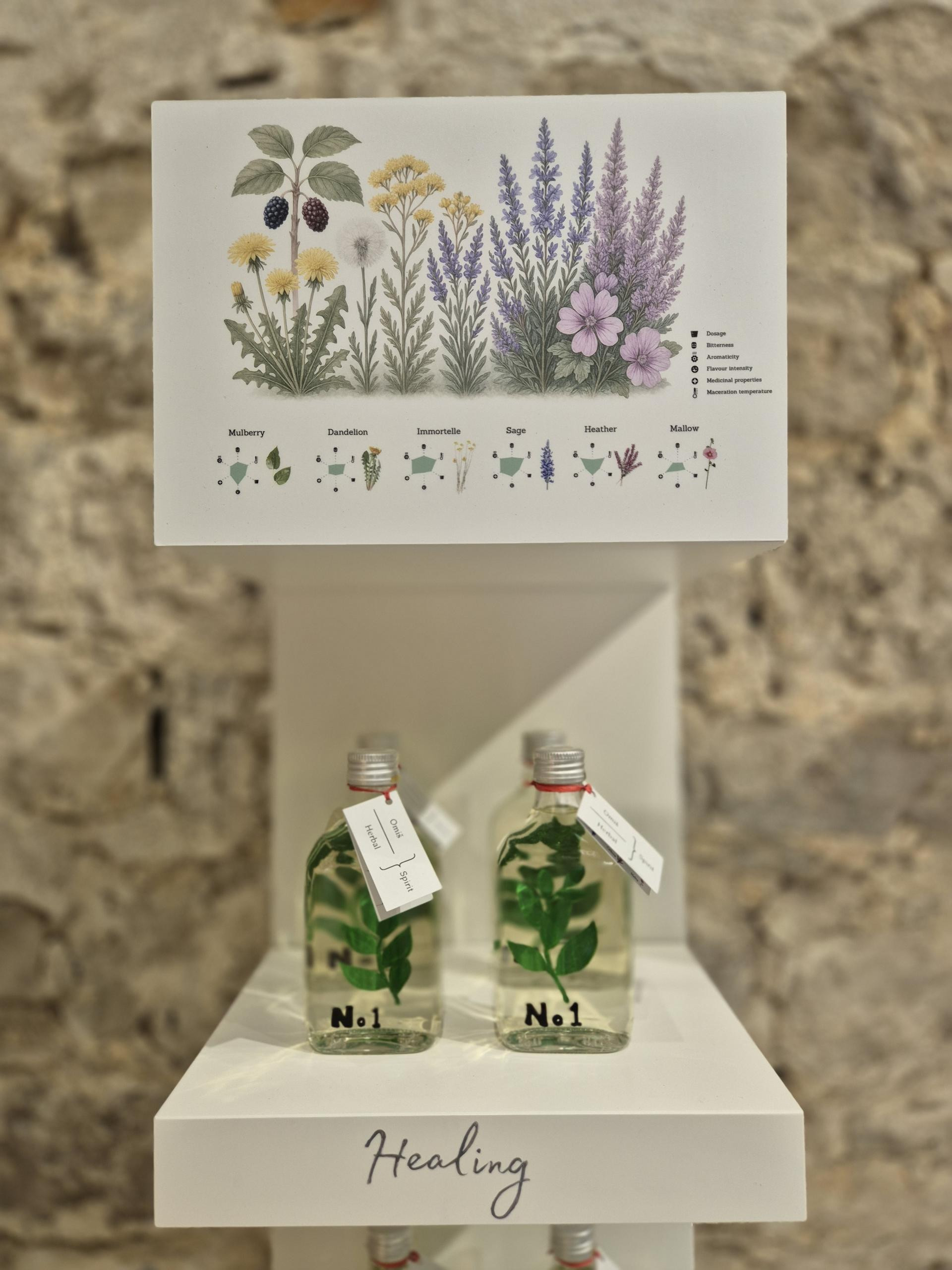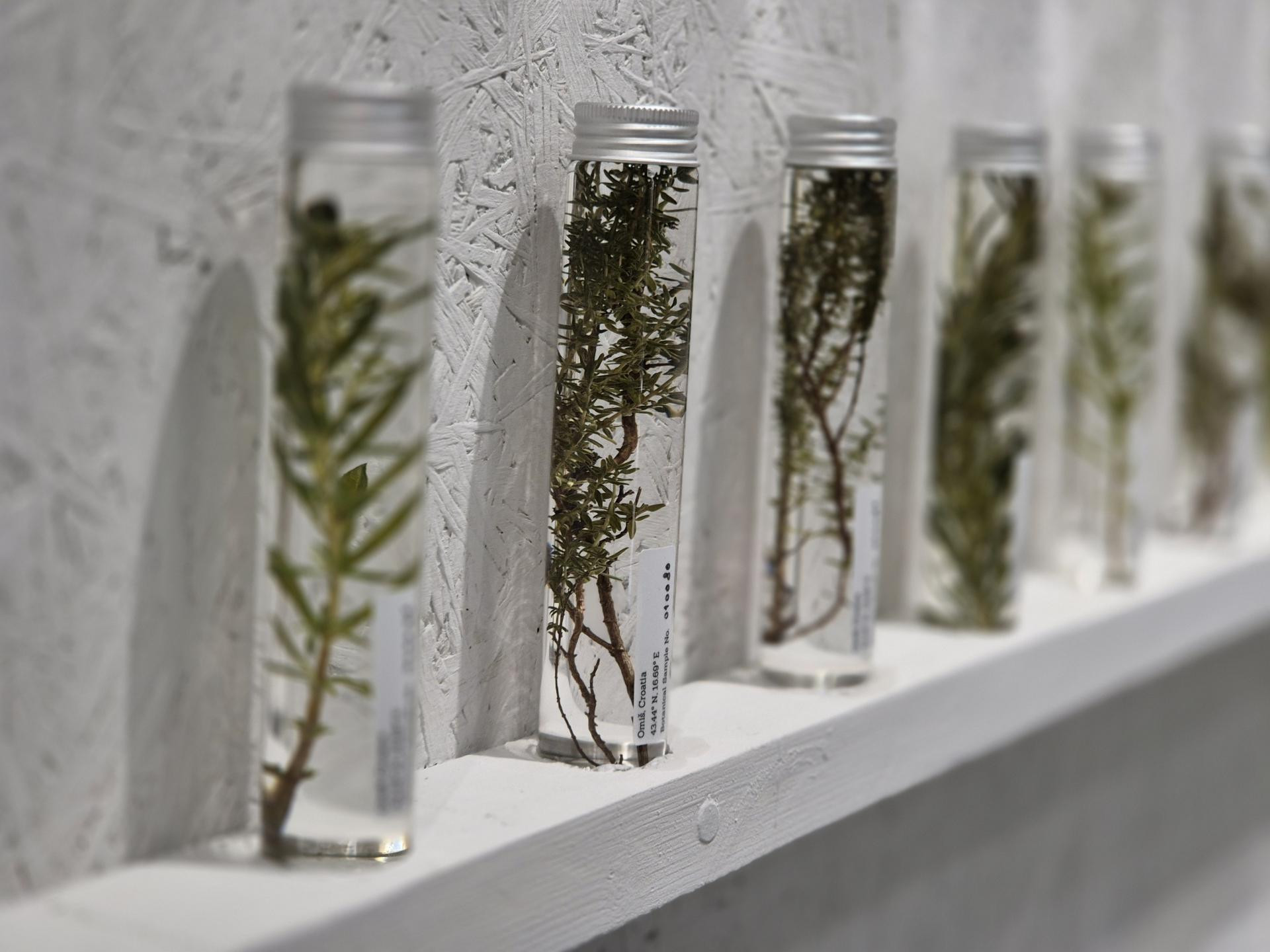 Botanički uzorci očuvani u mineralnom ulju, istovremeno se maceriraju, oslobađajući ljekovita svojstva biljaka u otopinu. Iako teoretski spadaju u kozmetičke proizvode, ovi radovi su prije svega umjetnički kolekcionarski primjerci koji slave ljepotu i snagu prirode.