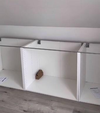 Međutim, ako trenutno niste u mogućnosti angažirati majstora koji će vam izraditi namještaj po mjeri za prostor ispod kosine, TikTok video kreativke Emme Courtney vrijedi kopirati. Emma je upotrijebila set kuhinjskih ormarića Metod iz IKEA-e kako bi stvorila kraću jedinicu za pohranu stvari, te je dodala visoka Pax vrata koja su bila savršena za pročelje, budući da je pod tim kutom bilo više okomitog prostora za rad.