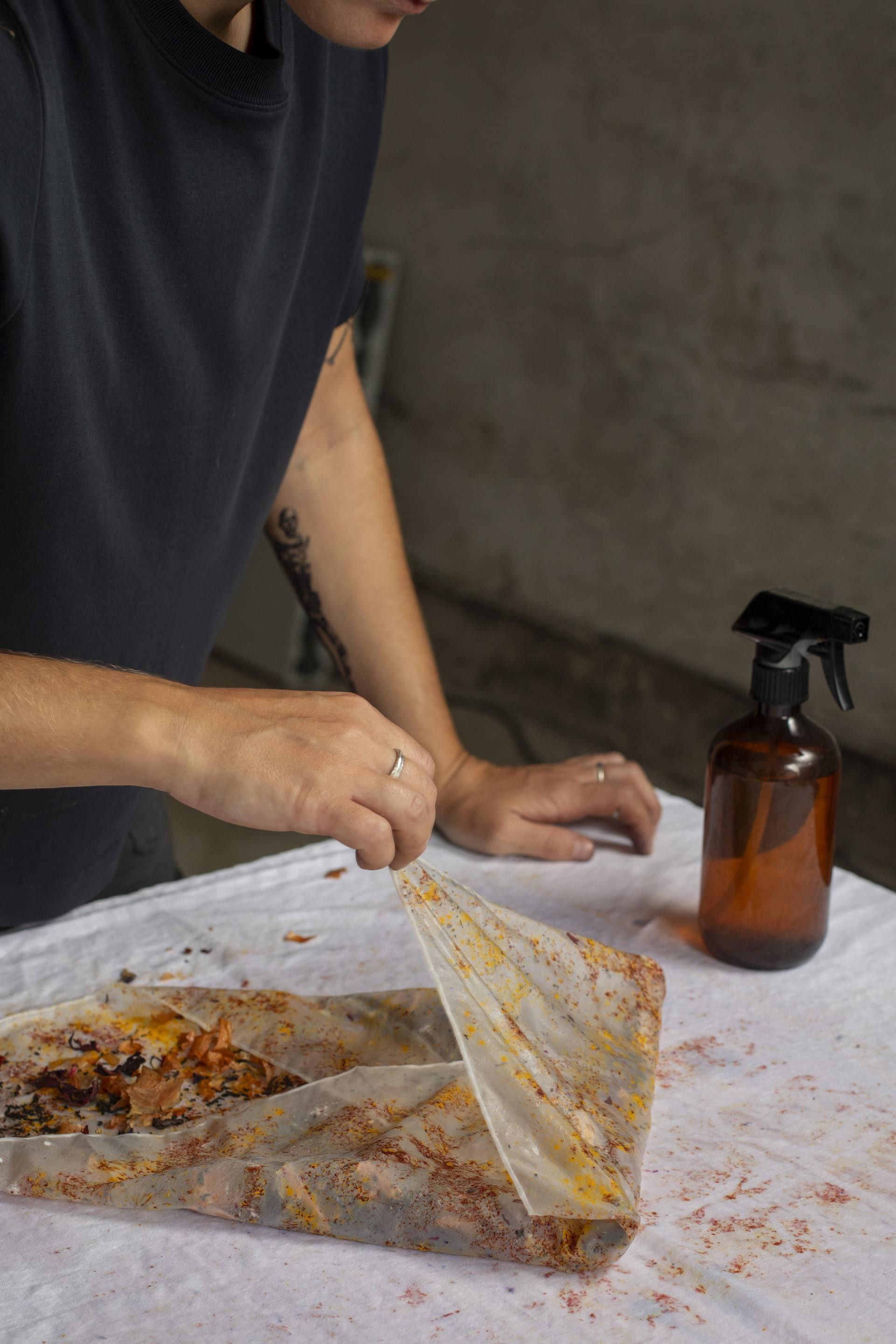 Vedrana Peček opisuje bojadisanje kao vještinu kemijskog izdvajanja i vezanja bojila iz prirodnih izvora – biljnih, mineralnih ili životinjskih – uz pomoć močila, tvari koja služi kao fiksator. Močilo osigurava da boja ostane postojana: stabilna na pH vrijednosti, otporna na UV zračenje i pranje, uz minimalno izbjeljivanje. Poznavanje kemije ključno je za razumijevanje zašto određene biljke daju bolje rezultate, a Vedrana je svoja istraživanja provodila u laboratoriju fakulteta, koristeći specijalizirane aparate za analizu i testiranje materijala.