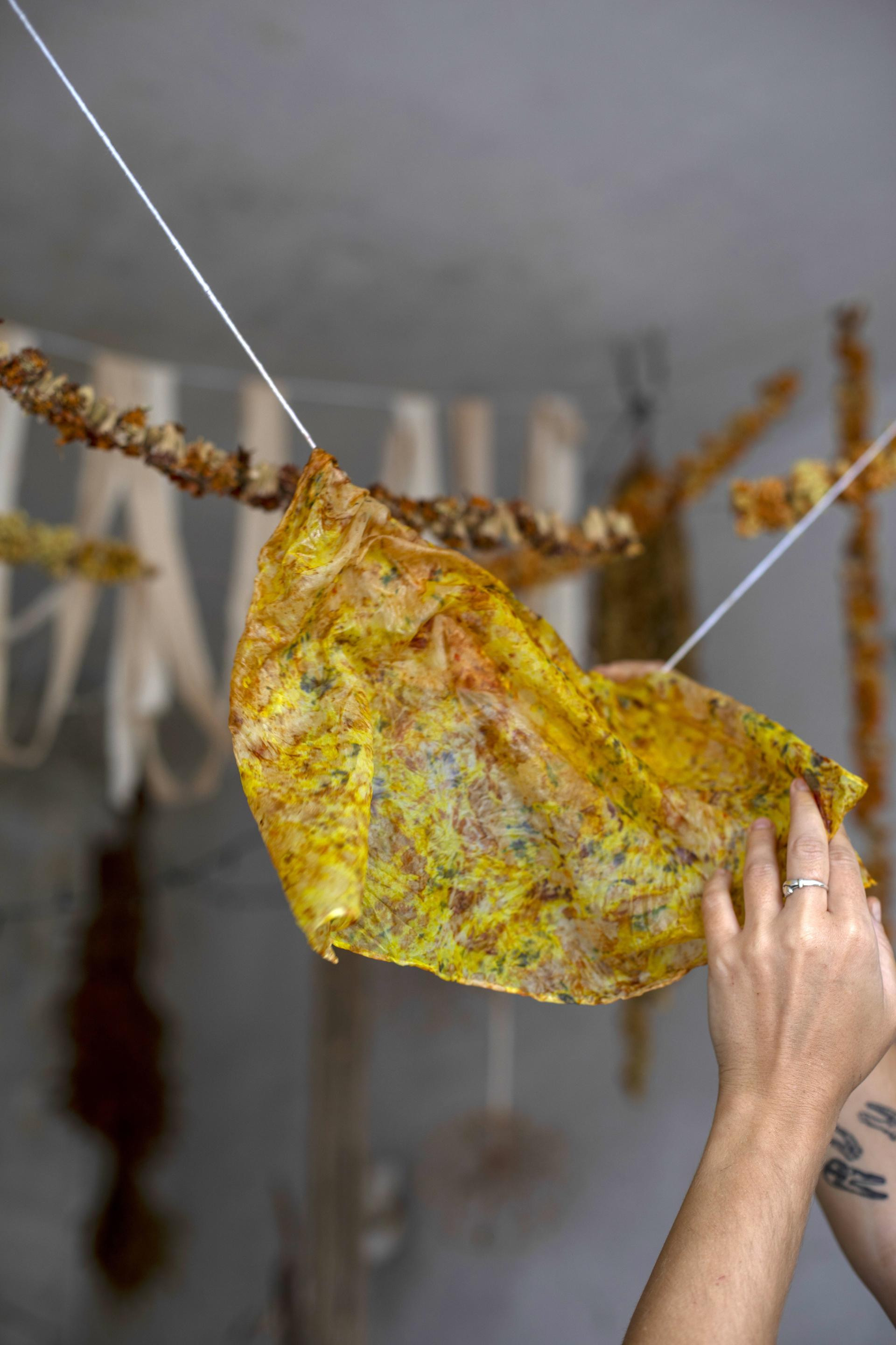 Vedrana Peček je mlada umjetnica koja već godinama gradi svoj jedinstveni put na sjecištu znanosti, umjetnosti i ekološke osviještenosti. Nakon završetka Škole za grafičku produkciju i dizajn, upisuje Tekstilno-tehnološki fakultet, gdje je 2023. magistrirala inženjerstvo tekstilne tehnologije i modnog dizajna. Njezin magistarski rad, naslovljen “Istraživanje primjene prirodnih bojila za bojadisanje tekstilnih materijala”, postavio je temelje njezine današnje umjetničke prakse.