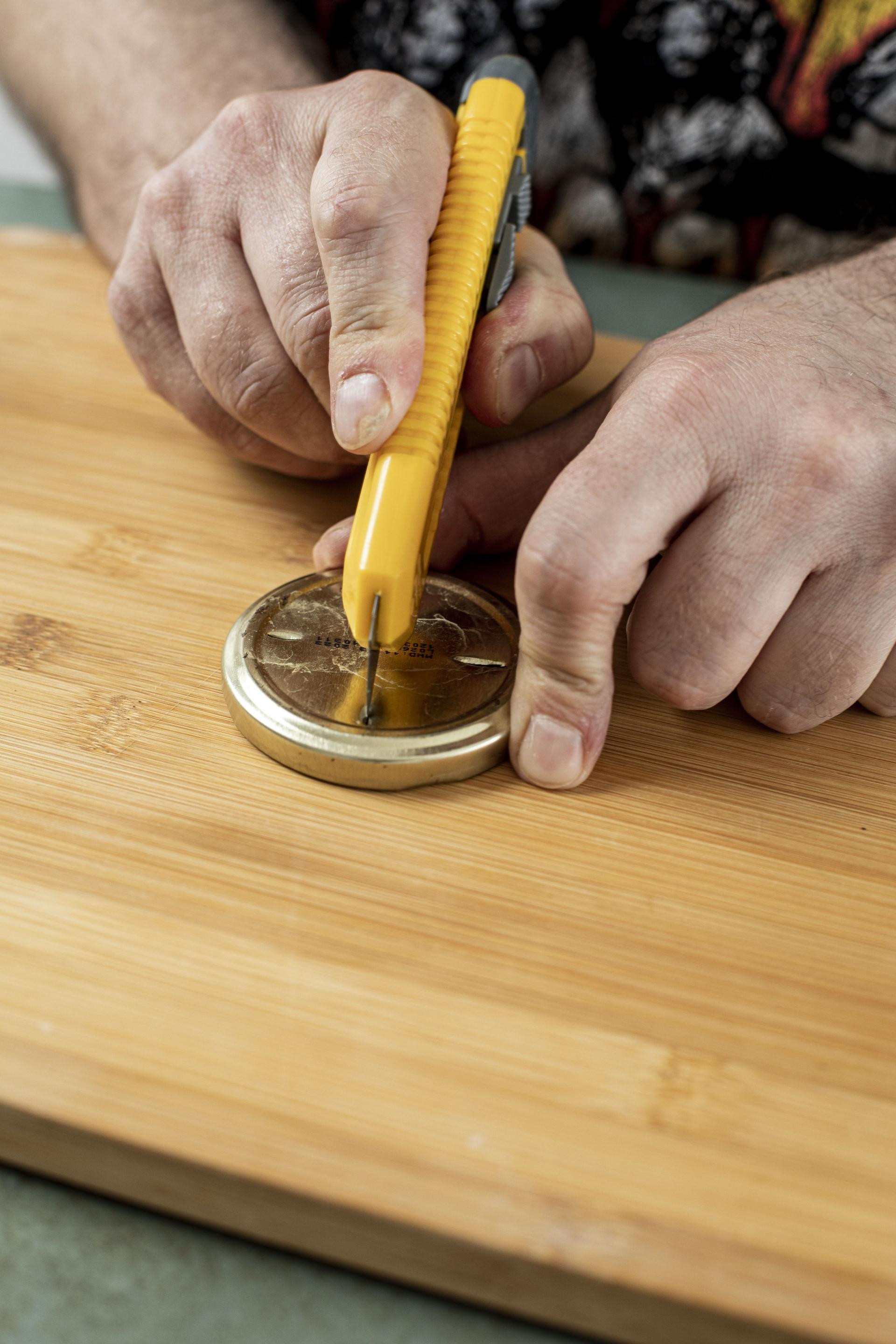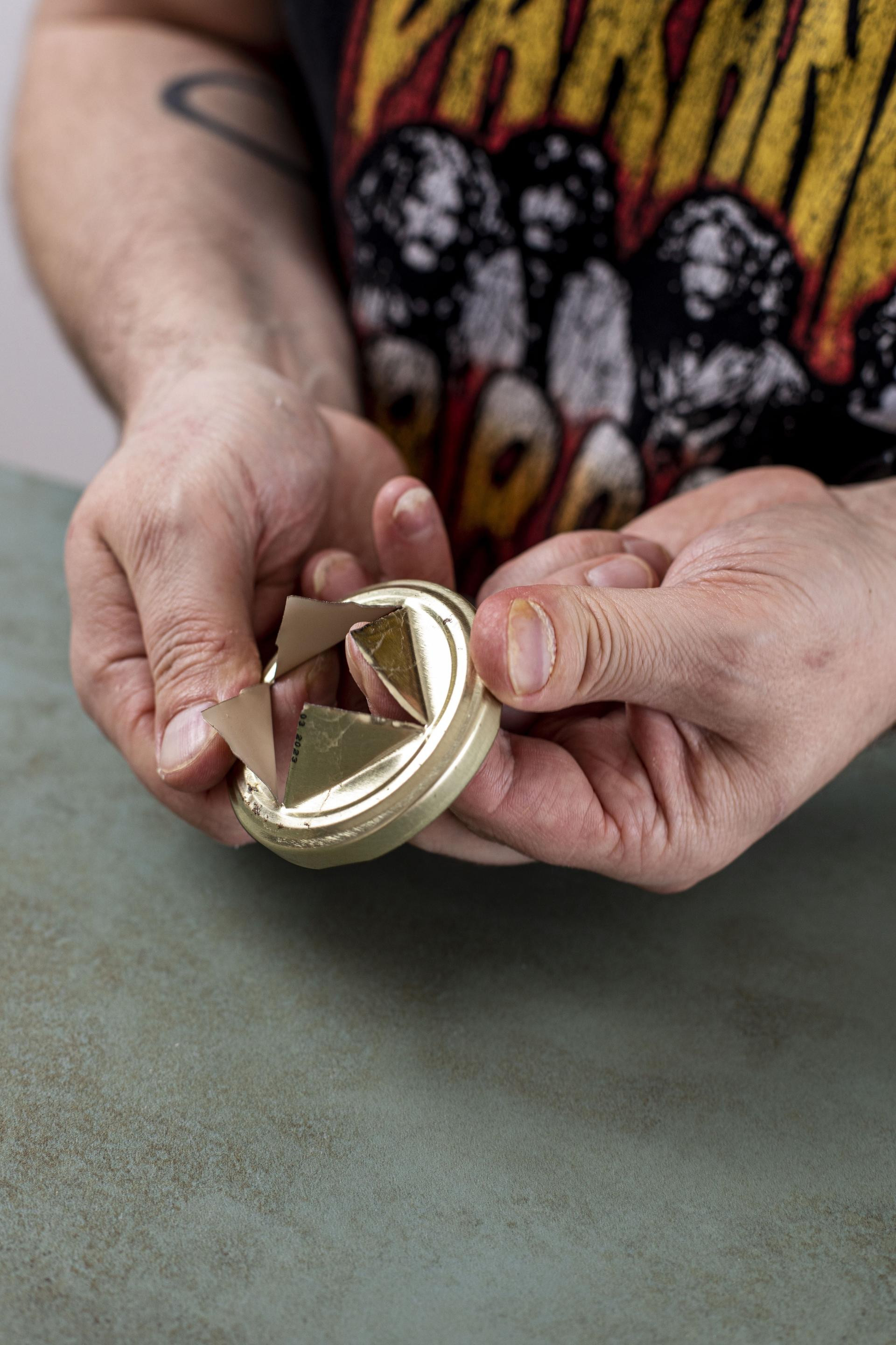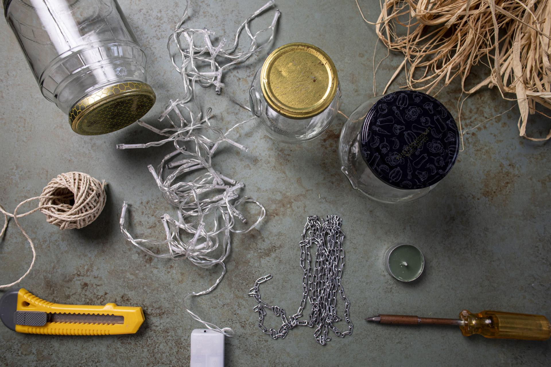 Za izradu su potrebni: razne varijante teglica s limenim poklopcima, skalpel ili škare za rezanje.
