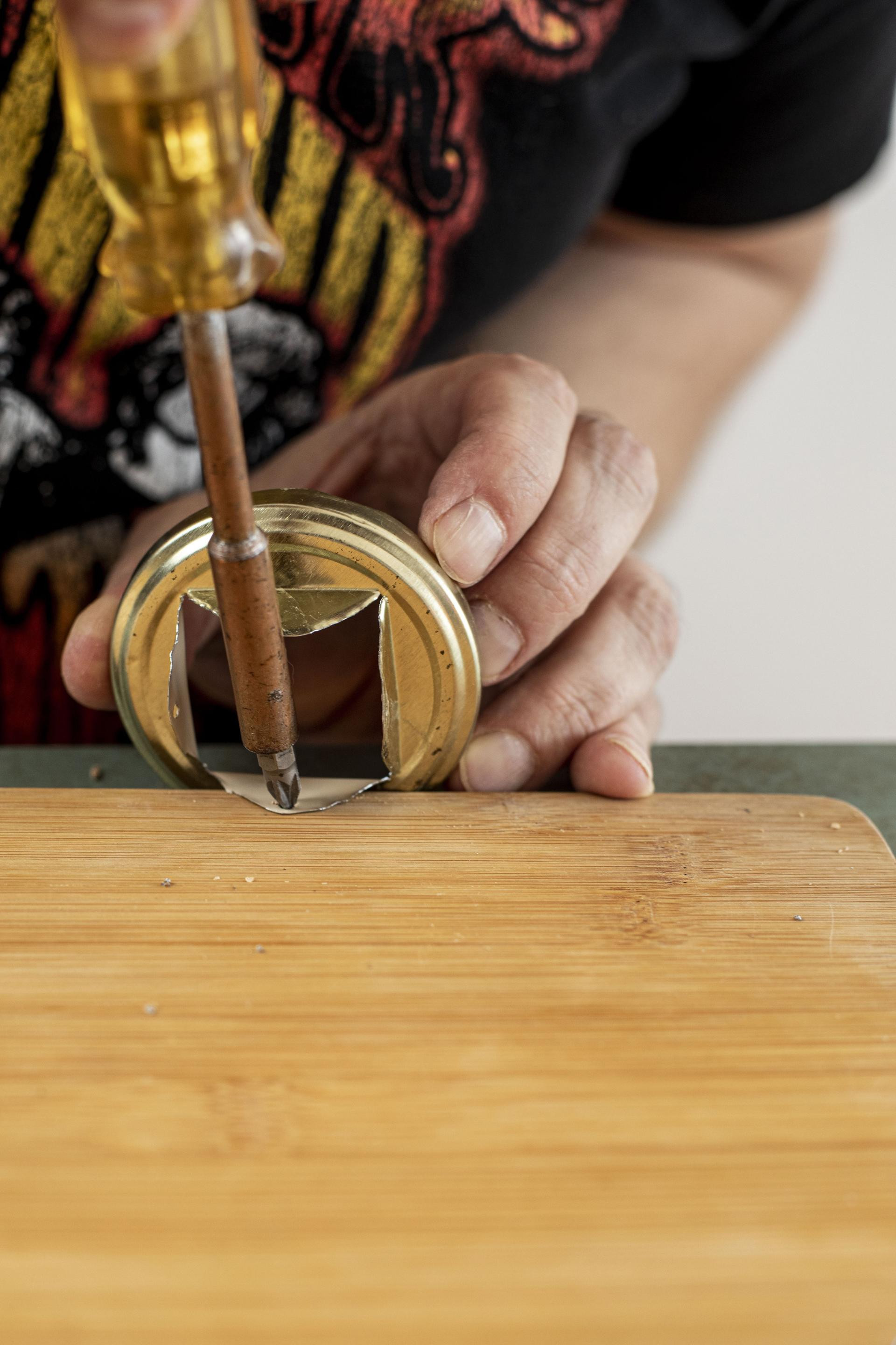 Korak 5: Za varijantu sa svijećom prerežite poklopac "u križ" na četiri jednaka dijela.