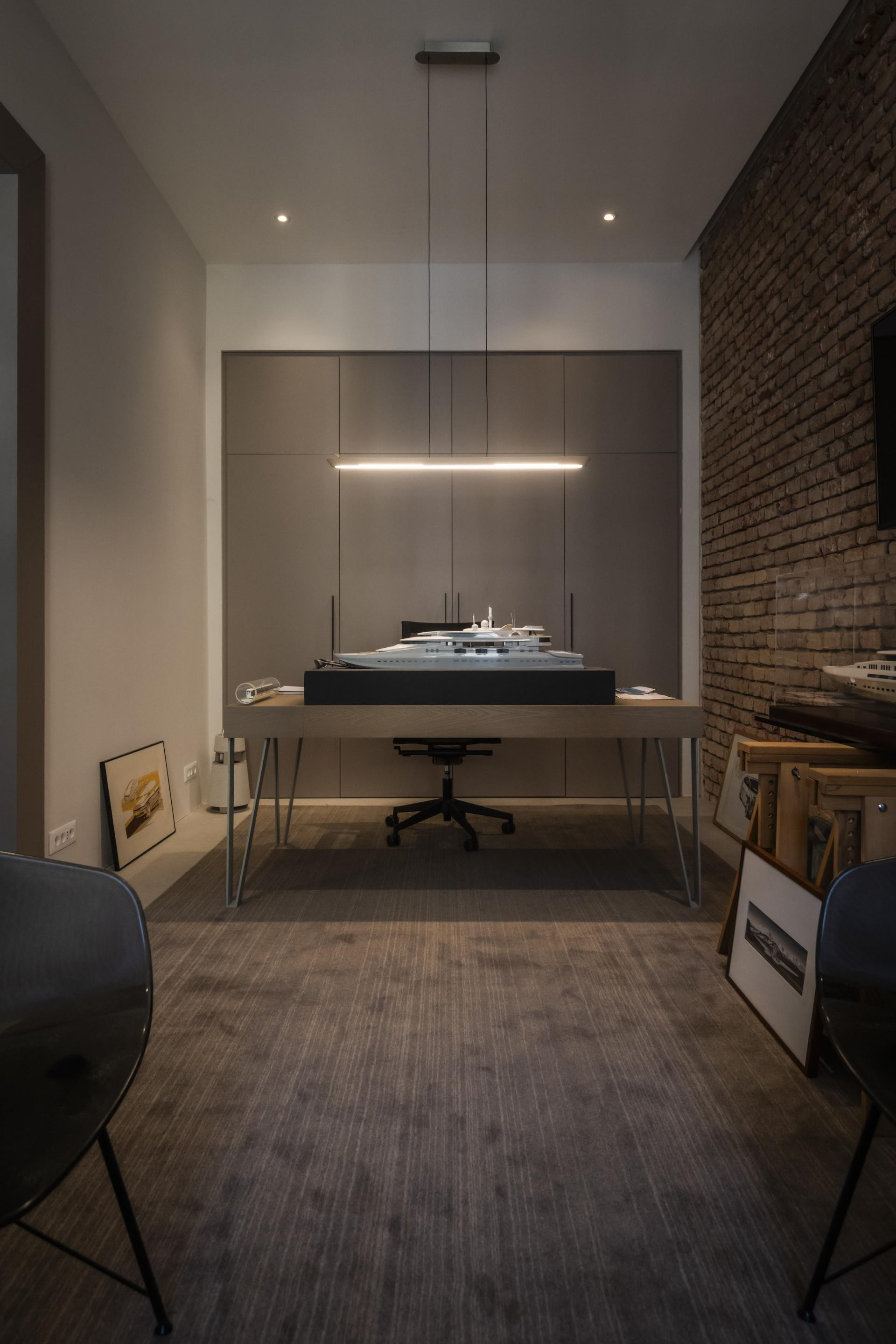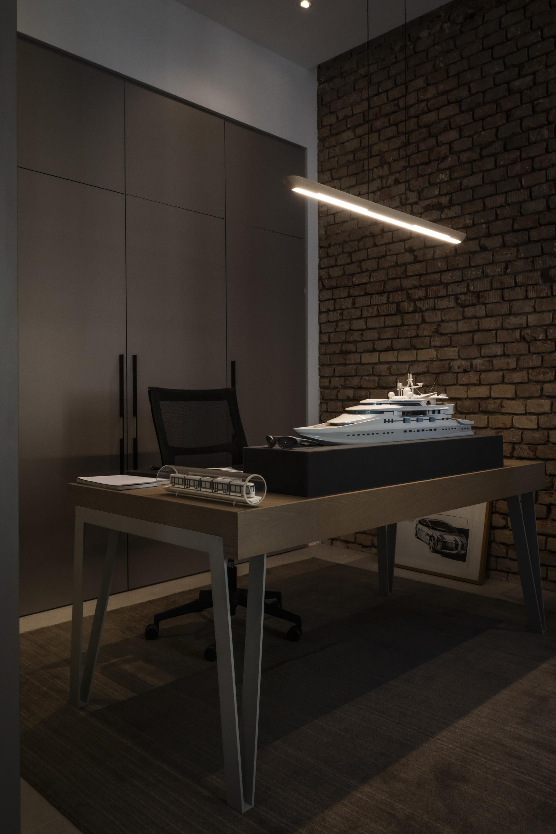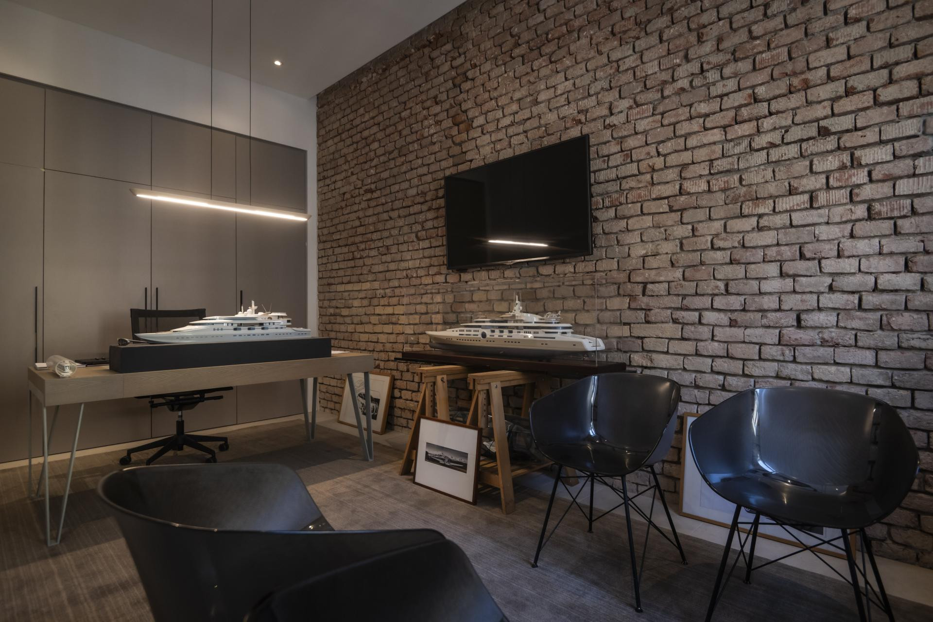 Boje su komplementarne, nijanse nenametljive, a za najveće je ormare odabrao srednje sivu koja se prožima i zajedničkim prostorom i njegovim uredom koji, neočekivano, nema vrata, nego okvir obložen istim sivim materijalom. U tom je dijelu ureda ostavio i originalni cigleni zid ispred kojeg je izložena maketa prve jahte koju je dizajnirao, a uz prozor su se smjestili i automobili koje često vidimo na cestama, ali tek sad saznajemo da ih potpisuje upravo Hermidasov tim.
