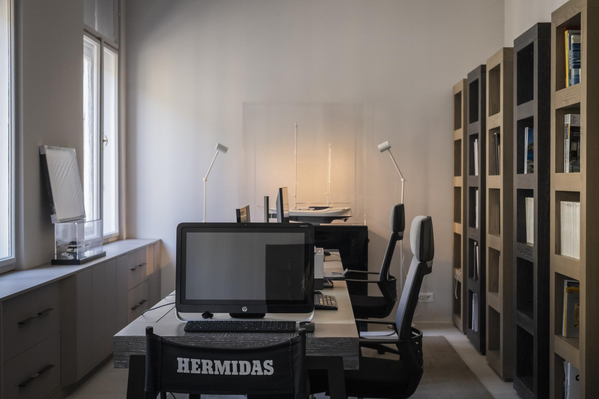 Hermidasa smo posjetili u novootvorenom uredu u Gundulićevoj ulici u kojemu se već s ulaza može osjetiti odmjereni francuski stil. Odabrao je jednostavan, ali kvalitetan i po mjeri izrađen namještaj s retro statement komadima koji u odličnoj mjeri razbijaju pravocrtna i jednobojna ugradbena rješenja, modularne jedinice koje su tu za brzu mogućnost preinake prostora i desetak metara dugačku komodu kojom je odlično iskorišten prostor ispod prozora, a u kojoj su smješteni uzorci originalnih materijala kako bi klijenti mogli dobiti pravi osjećaj onoga što im predlaže kao rješenje.