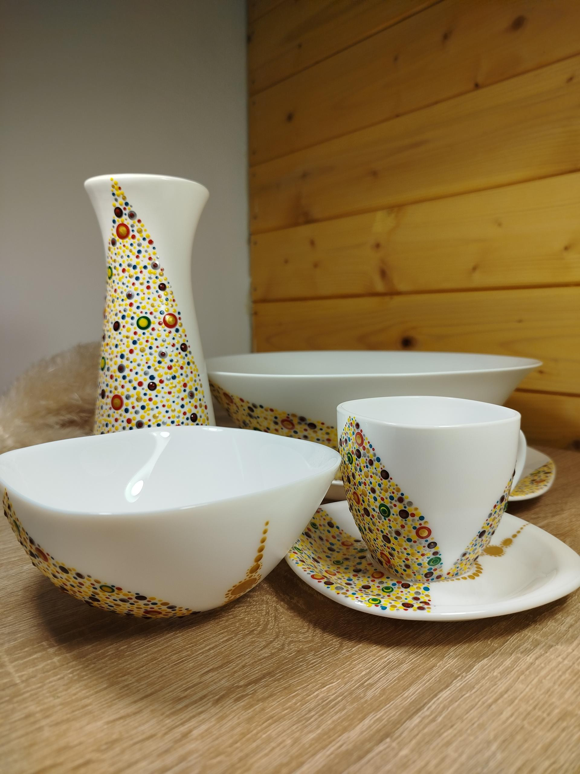 Njezini radovi nisu samo uporabni predmeti - oni su sitna remek-djela, pažljivo izrađena keramička platna oslikana tehnikom ručnog točkanja. U svijetu kojim vladaju brzina, automatizacija i masovna proizvodnja, Martinina filozofija je upravo suprotna: ona vraća vrijednost ručnom radu, detaljima i vremenu uloženom u svaki pojedini predmet. Njezine šalice, zdjelice, mirisnice, tanjuri i vaze nisu samo estetski iznimni, već nose sa sobom i emocionalnu komponentu. Svaka točkica na keramici pažljivo je postavljena, s jasnim redoslijedom, ritmom i namjerom. Martina nudi raznolike proizvode, od klasičnih šalica za kavu i čaj do mirisnica koje uz funkcionalnost donose i posebnu atmosferu.