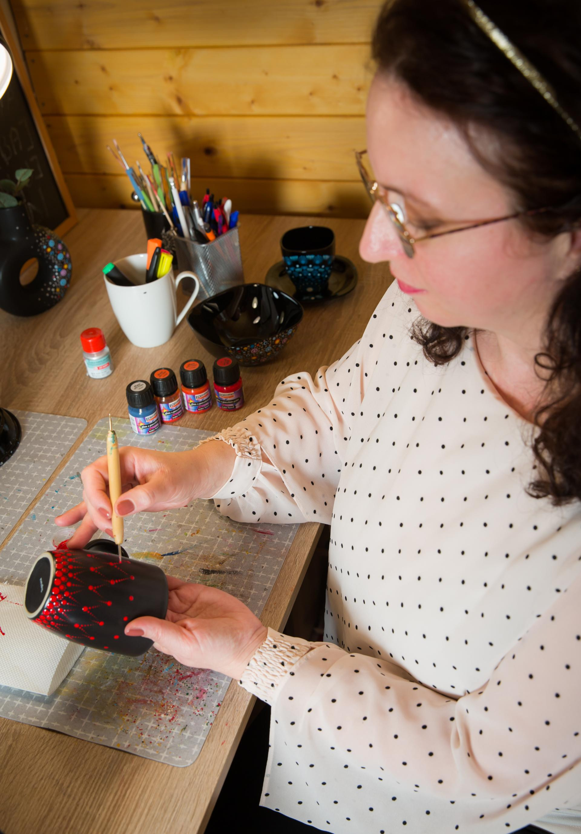 "Točno godinu dana nakon gubitka člana obitelji izuzetno jako mi je bio potreban odmak od svakodnevice. Stalan posao nije bio dovoljan da se nosim s time, već kreativan rad za kojim sam žudjela. Prateći online ideje sasvim sam slučajno u prilogu jednog medija uočila tu tehniku koja me odmah privukla - tehnika dot mandala", kazala nam je Martina. Tvrdi da joj je ta tehnika djelovala jednostavno, a ipak kreativno i prelijepo po završetku. Do tada se nije susretala s oslikavanjem keramike i jako ju je privukla mogućnost korištenja boja u obliku točke. Iako se prijašnjih godina bavila drugim hobijem - kreativnim rezbarenjem voća i povrća - dot mandala ju je oduševila. Ubrzo je ovladala ovom tehnikom, a rezultat su bili unikatni komadi keramike, jedan ljepši od drugoga. Martina nam je opisala i kako izgleda proces izrade jednog unikatnog komada, od početne ideje do gotovog proizvoda.