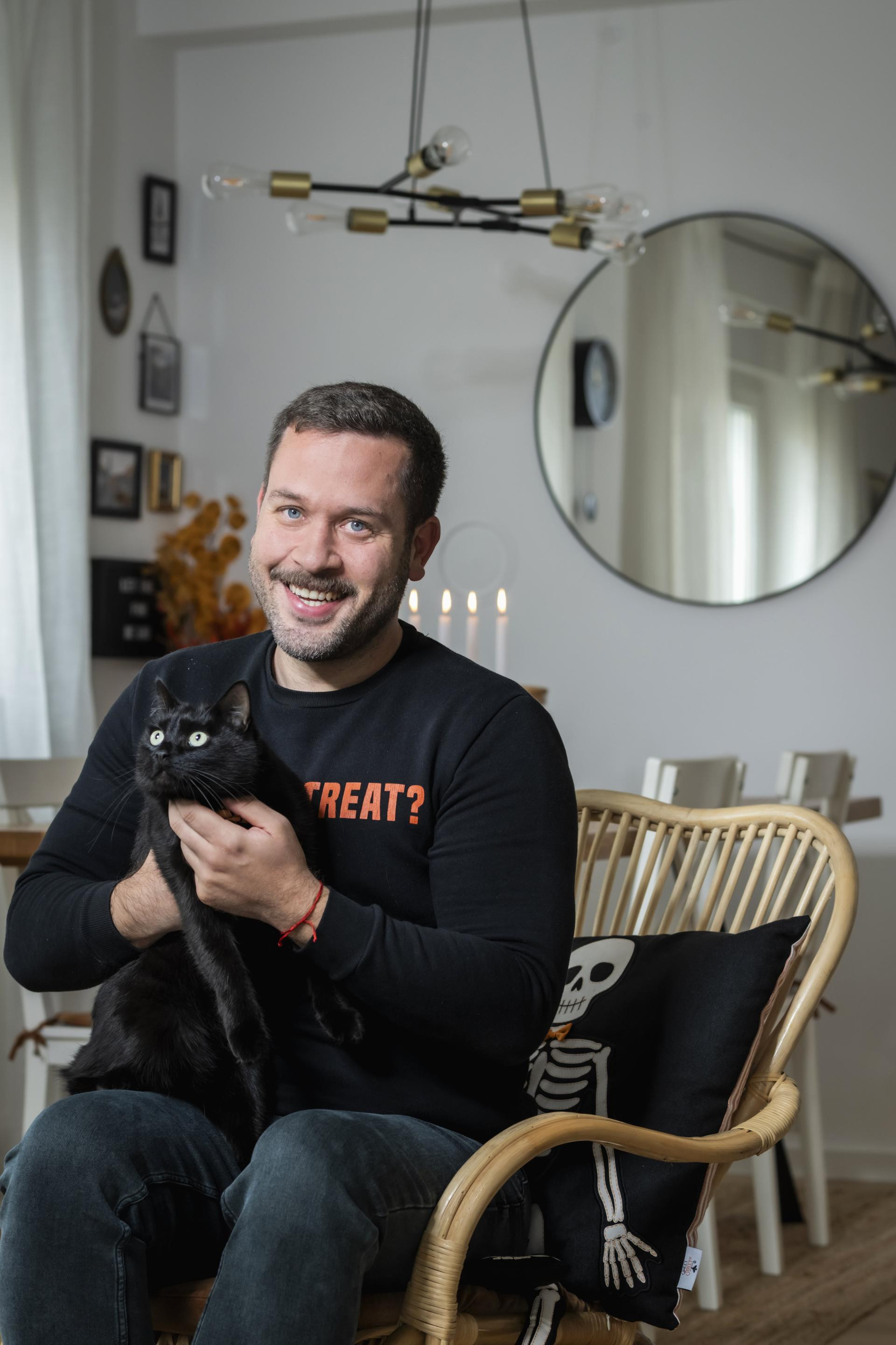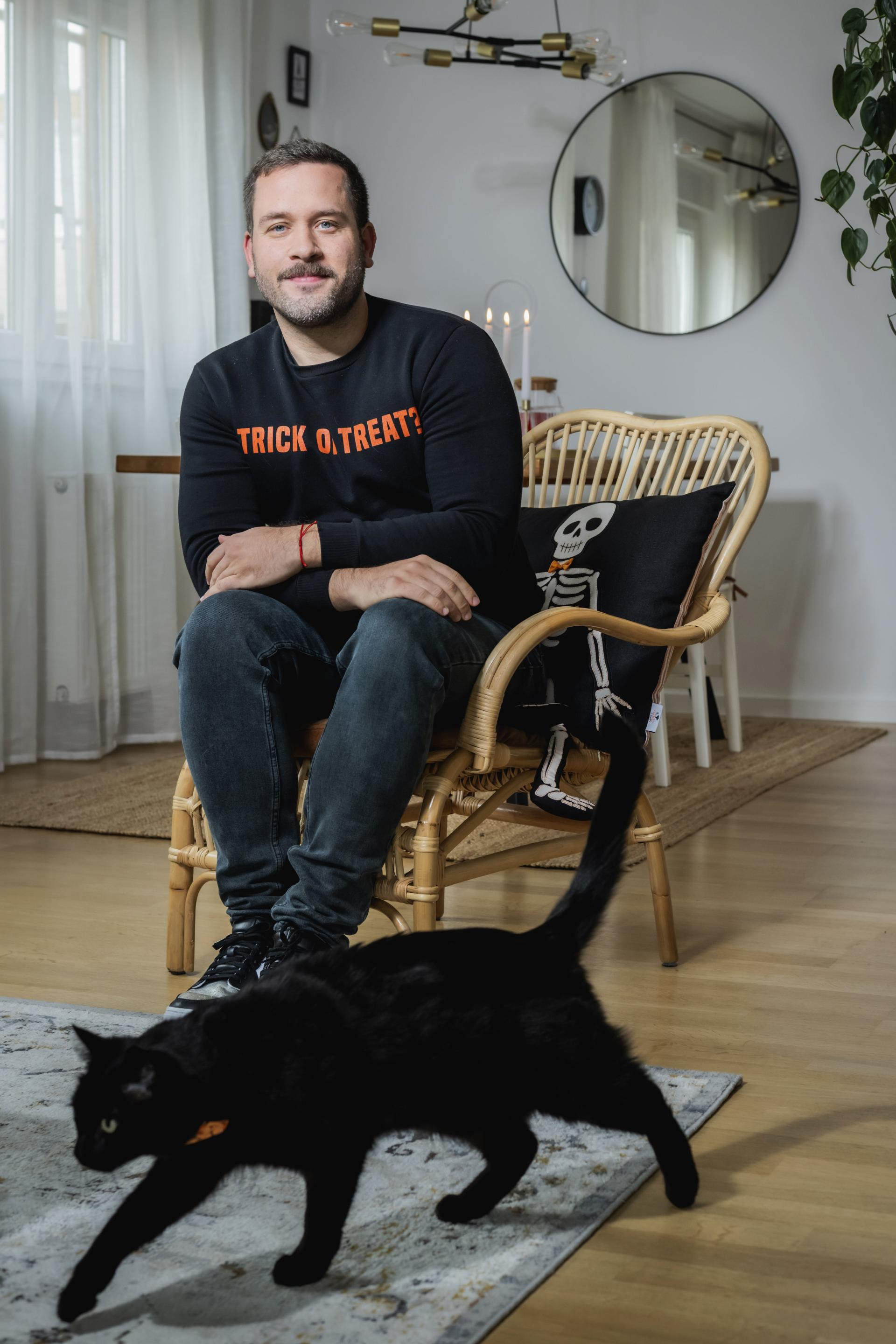 Stan u Samoboru, koji će uskoro postati pozornica velike zabave povodom Halloweena, Sandro je uredio do najmanjeg detalja. Već na samom ulazu dočekao nas je zanimljiv miris koji se širio njegovim domom – ispostavilo se da je riječ o vosku za topljenje domaćeg brenda Sphynks. Dakle, od ugodnog mirisa jeseni do ukrasnih jastučića, Sandrov je životni prostor dokaz s kakvim "okom za detalje" ovaj nadareni ilustrator pristupa svemu što radi. A to su prepoznali i ostali stanari u njegovoj zgradi, ali i cijelo susjedstvo.