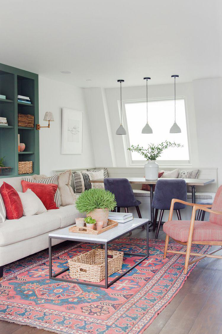 Uske prostorije često koristimo za više funkcija, poput kombinacije dnevnog boravka i radnog kutka i zato ključ njezina uređenja može biti u vizualnom zoniranju, u čemu će najviše pomoći - tepisi.