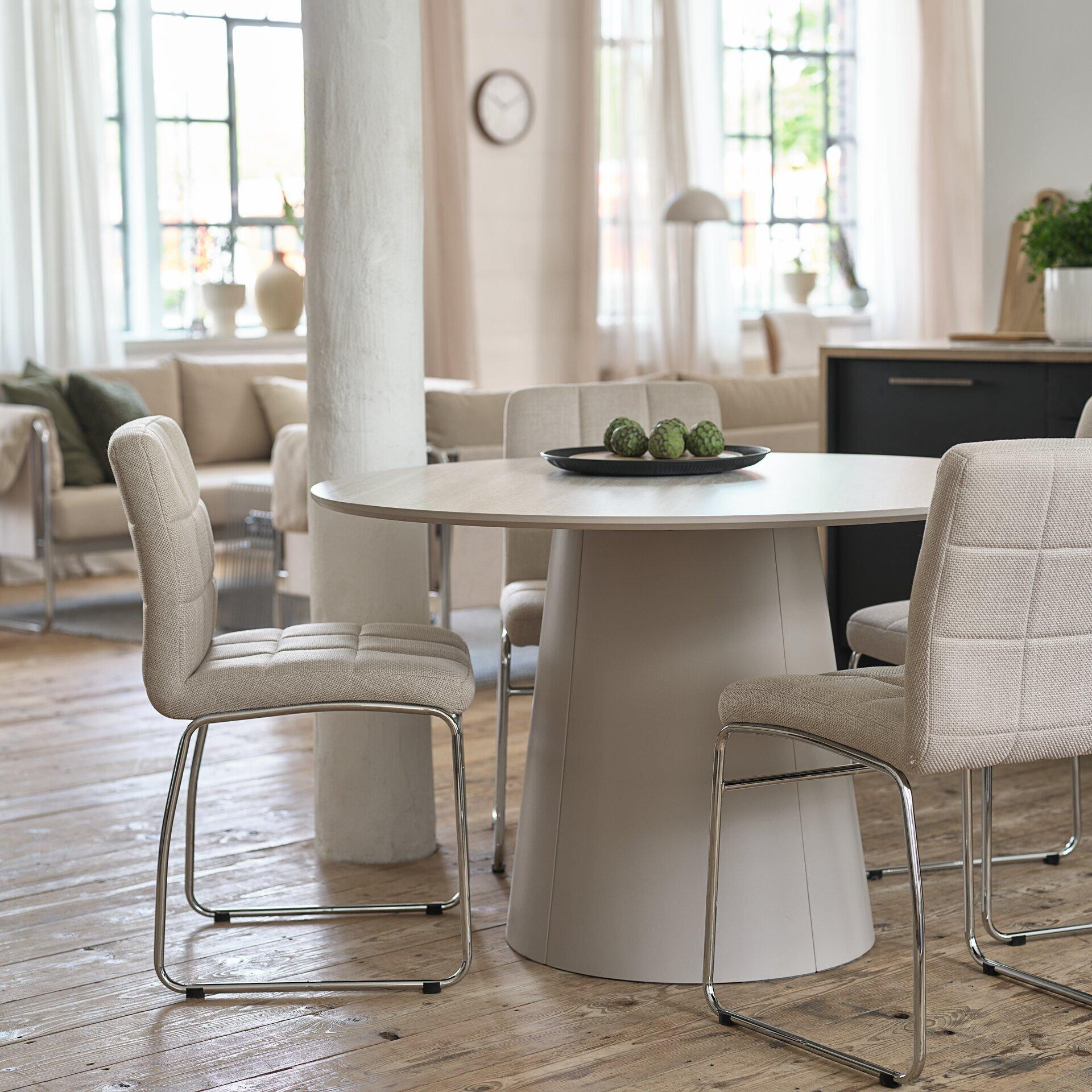 Blagovaonski stolovi u “travertin” izvedbi, unose dojam luksuza i elegancije, dok komode u toploj boji hrasta donose onu dobrodošlu kućnu toplinu.