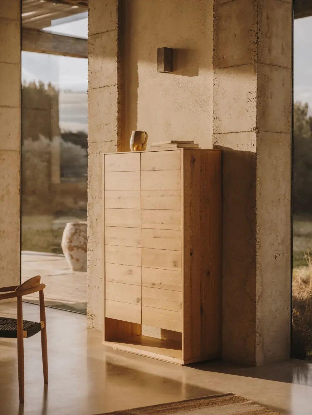 Ljetna kolekcija također sadrži Oaq kolekciju, ekskluzivni dizajn koji je razvio istraživački i razvojni tim Kave Home. Sofe u kolekciji dolaze s punilom od recikliranih PET vlakana koja imaju efekt perja, dodajući dodatnu udobnost. Kolekciju Alguema čine komode, TV stalci i drugi komadi koji udahnjuju mir zahvaljujući svom minimalističkom stilu i završnoj obradi od prirodnog hrastovog furnira. Joncols je vanjska kolekcija koju je kreirao Made Studio kao ekskluzivni dizajner za Kave Home. Njegove organske, zaobljene forme inspirirane su šljunkom i riječnim kamenjem.
