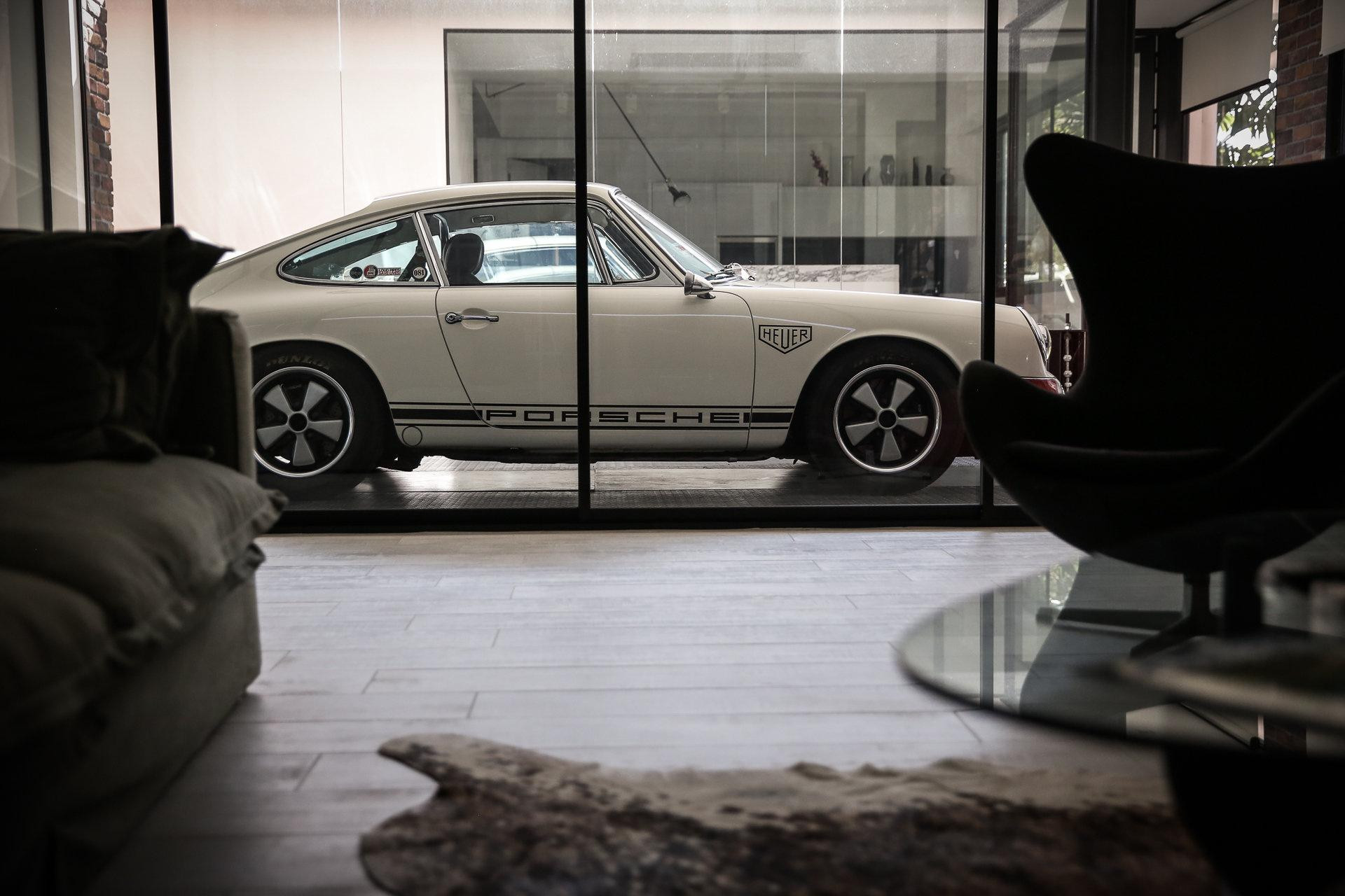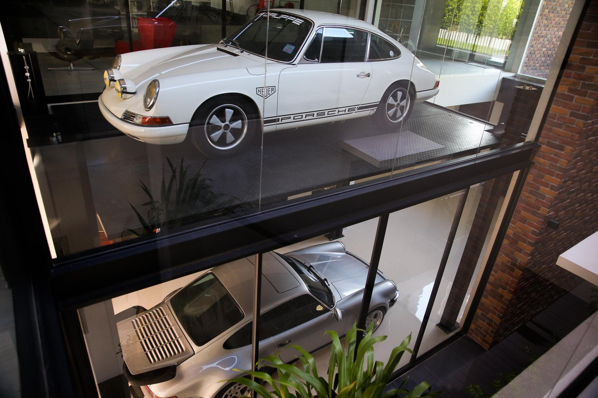 Naime, svakih nekoliko dana Tenn pomoću hidrauličnog lifta podigne drugi Porsche iz garaže na drugi kat kuće i postavi ga na stakleni podij u dnevnoj sobi - kao da postavlja novu izložbu u galeriji.