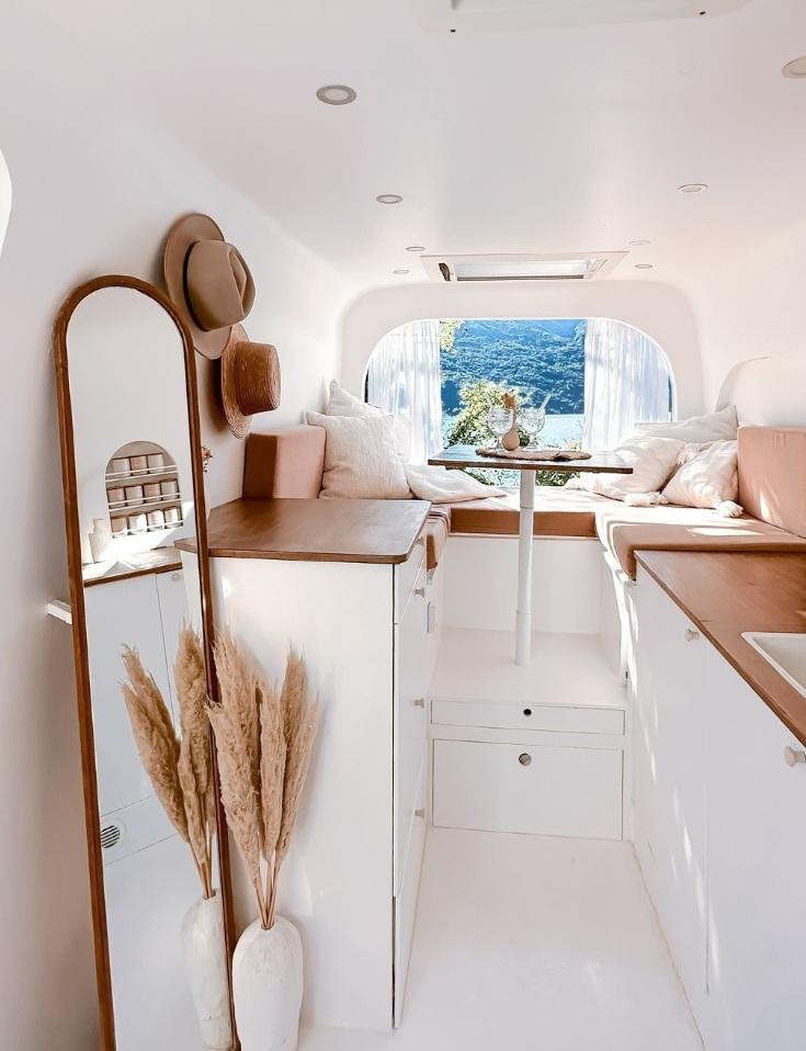 Yas, koja je poznata po svom besprijekornom smislu za estetiku i ljubavi prema boho stilu, brine se da svaki kutak njihovog kombija odiše toplinom. U nišama po zidovima nalaze se vaze s cvijećem, na prozoru su prozračne zavjese, na volanu čipka, a tu je čak i veliko ogledalo te kuke na vratima koje služe za objesiti ljuljačku. Sve te sitnice čine njihov dom iz snova još posebnijim i zaista jedinstvenim.
