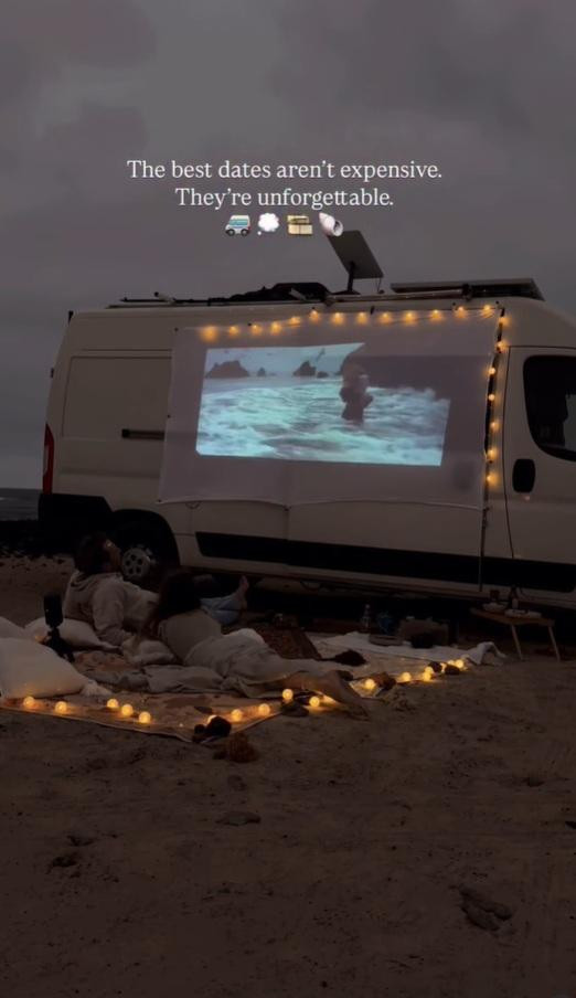 Tijekom toplih ljetnih večeri, ovaj par koji je u vezi punih 11 godina, zna prirediti pravu filmsku večer na svojoj ‘terasi‘. Izvuku tepih, ukrase prostor lampicama, a na kombiju rašire plahtu koju uz pomoć malenog projektora pretvore u filmsko platno. A takvi trenuci savršeno sažimaju njihov način života.