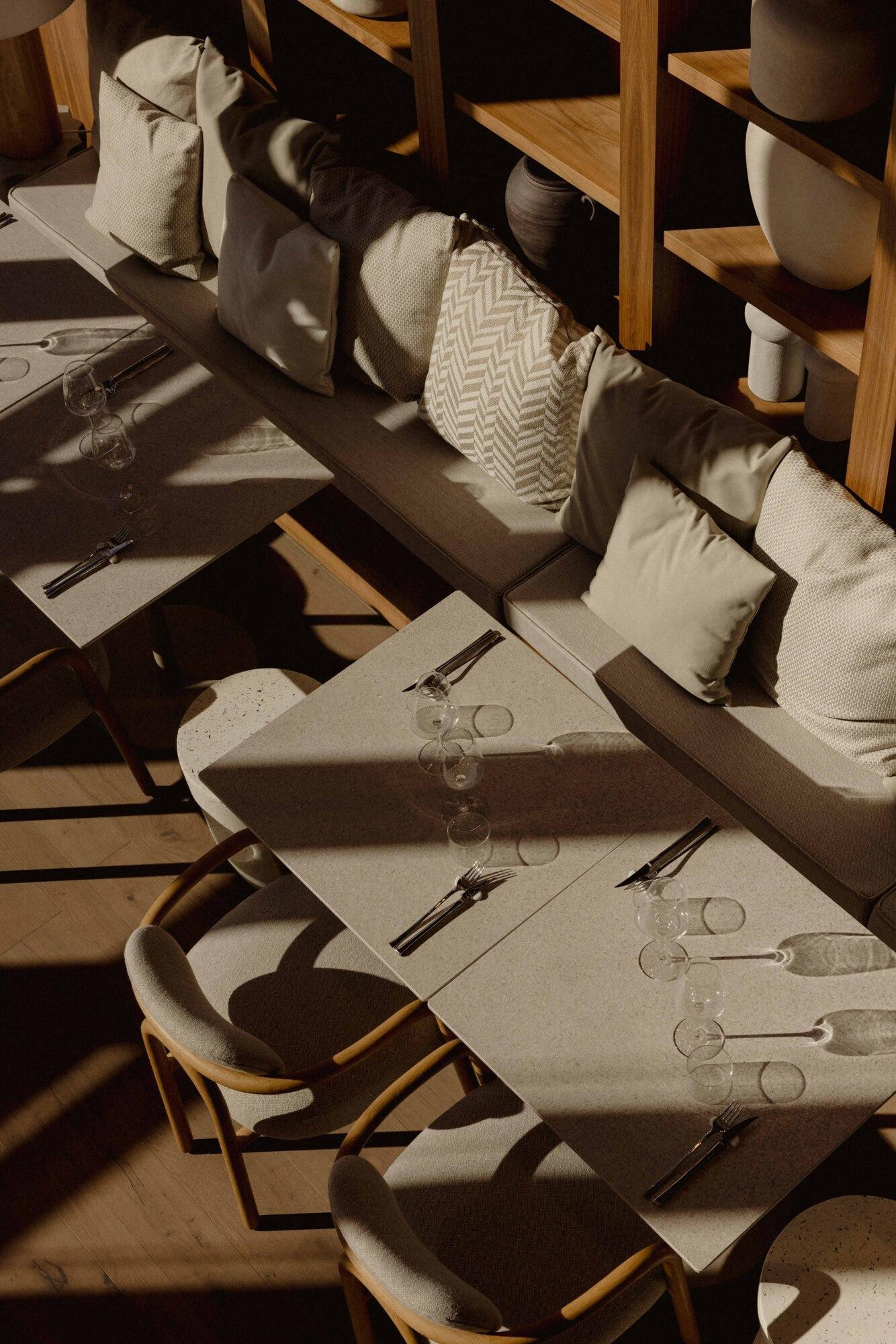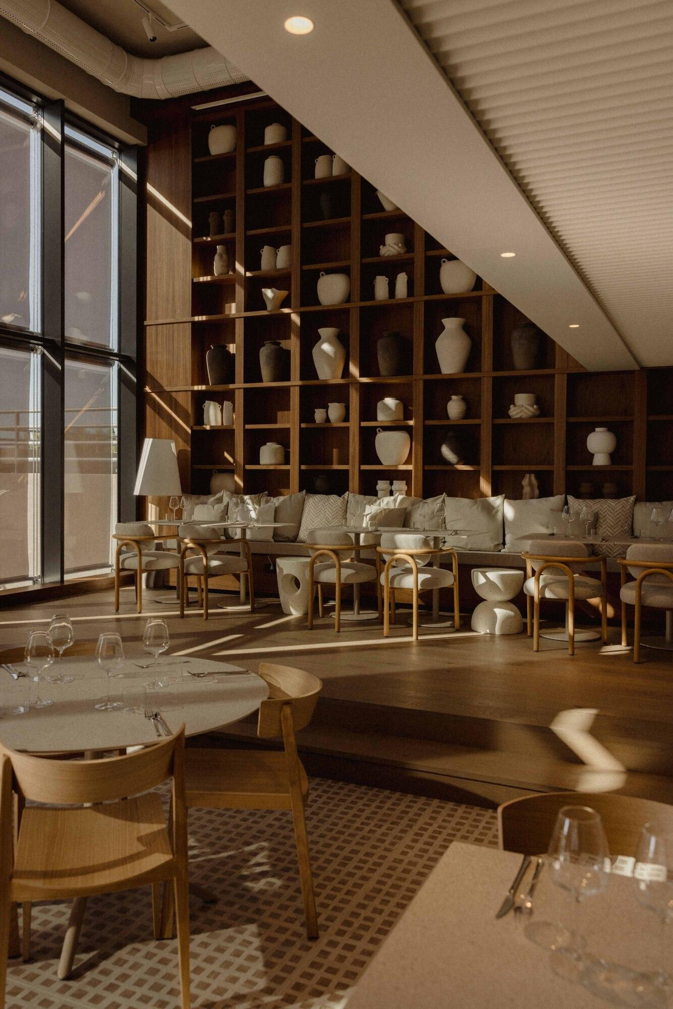 Prostor Allore oblikovao je renomirani arhitektonski studio Zarez, s idejom da restoran bude pojam i estetskog i gastronomskog doživljaja. Minimalizam prožet toplinom - kombinacija prirodnih materijala poput drva i kamena, neutralna paleta boja i prozračnost staklenih stijena - sve to stvara osjećaj elegancije i ugode. Biblioteka s dekorativnim vazama daje prostoru ritam i umjetnički karakter, dok lounge zona i udobne stolice naglašavaju društvenu dimenziju restorana.