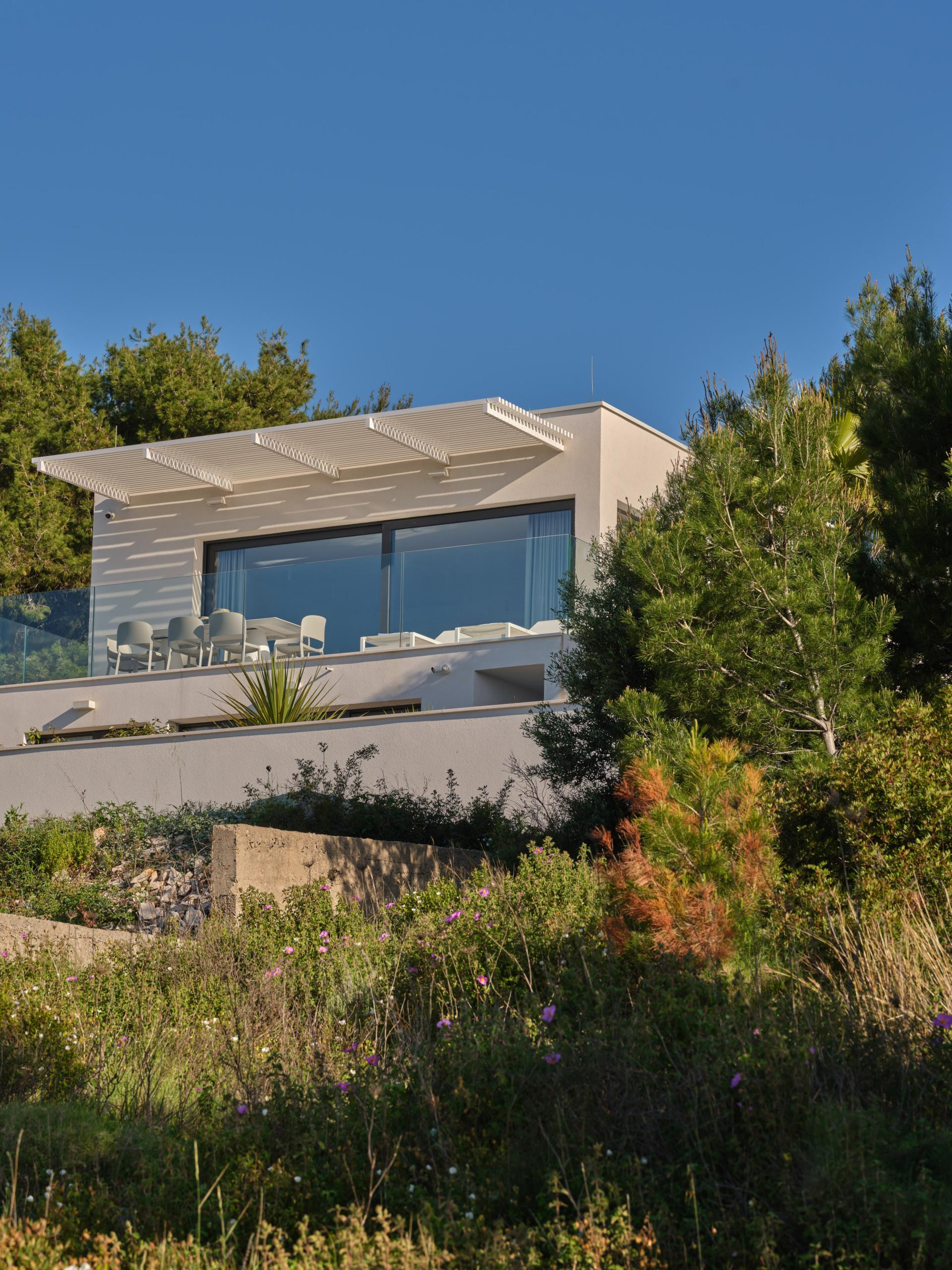 - Vrt je za nas mjesto opuštanja, meditacije i igre svjetla i sjene. Njegova ljepota u kontrastu je sve prisutnijoj betonizaciji obale i prevelikim, neosjetljivim građevinama koje udaljavaju ljude od mediteranskog načina života. S druge strane, ovo je malena zelena oaza koja poštuje prirodu i duh Mediterana. Manje je ponekad stvarno više - naglašava Ana koja je za ovaj prostor odabrala cvjetne i aromatične mediteranske grmove, ali i poneke egzotične biljke pa su tu, uz ostalo, agave, juke, više vrsta palmi, ružmarin, bugenvilija, čempresi i rogač.