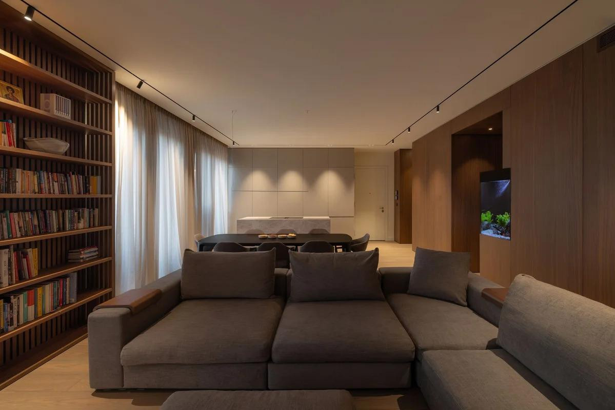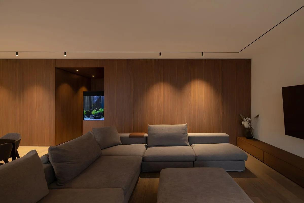 Jedan od posebnih zahtjeva klijenata bio je integrirati akvarij u interijer. Iako im se ta ideja u početku nije činila prirodnom, dizajneri su je pretvorili u svojevrsni vizualni dragulj prostora.
