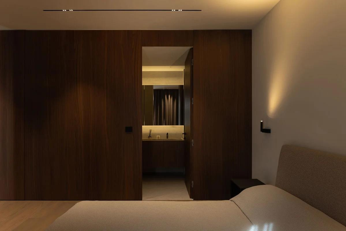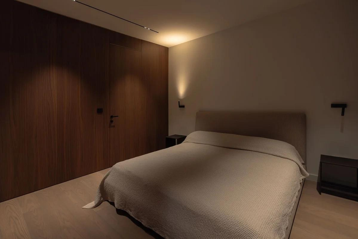 Spavaće su sobe zamišljene kao intimna utočišta s profinjenim osjećajem mira i udobnosti. Minimalistički pristup oplemenjen je nježnim svjetlom, mekanim tekstilima i pažljivo biranim detaljima koji stvaraju atmosferu opuštanja i topline.