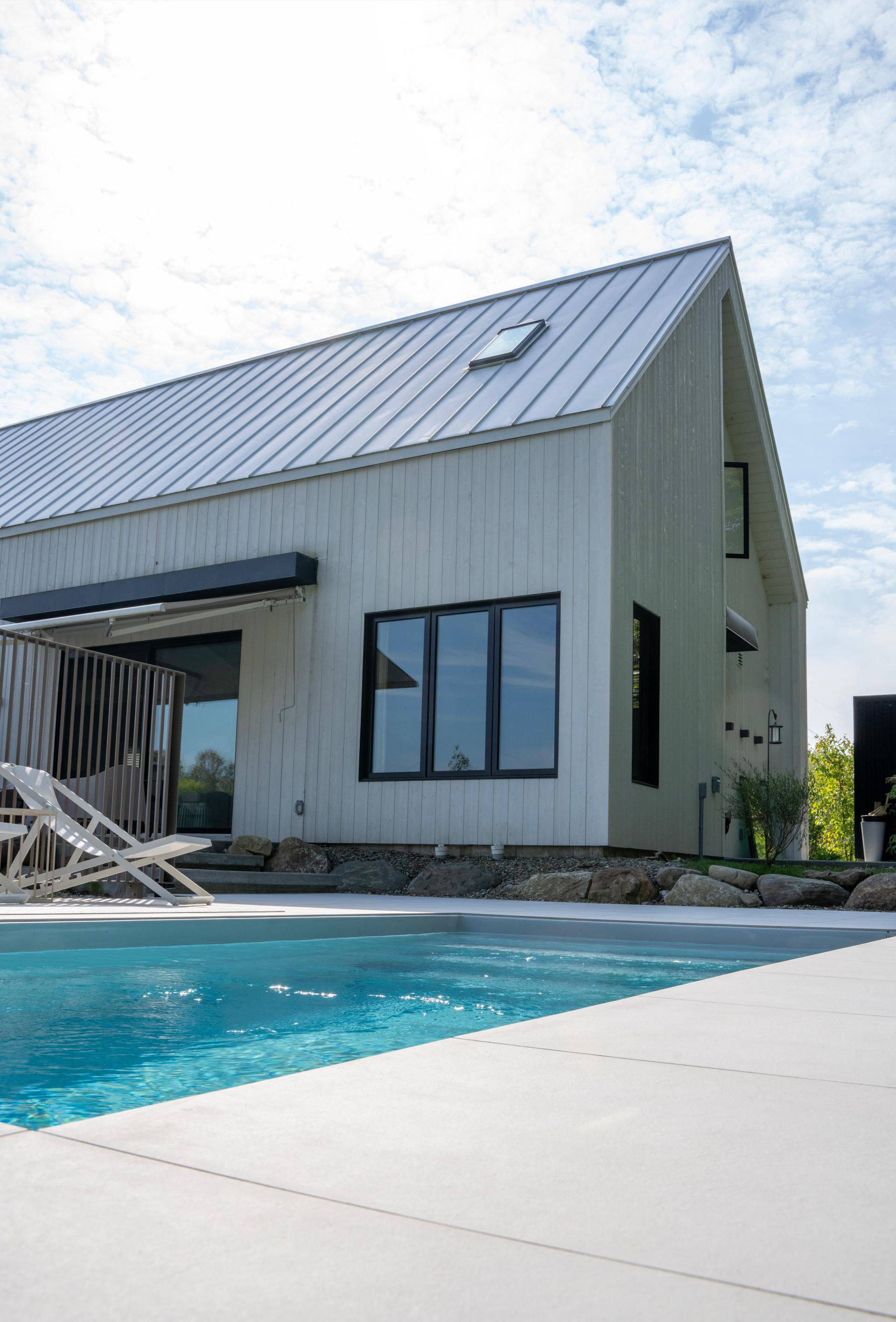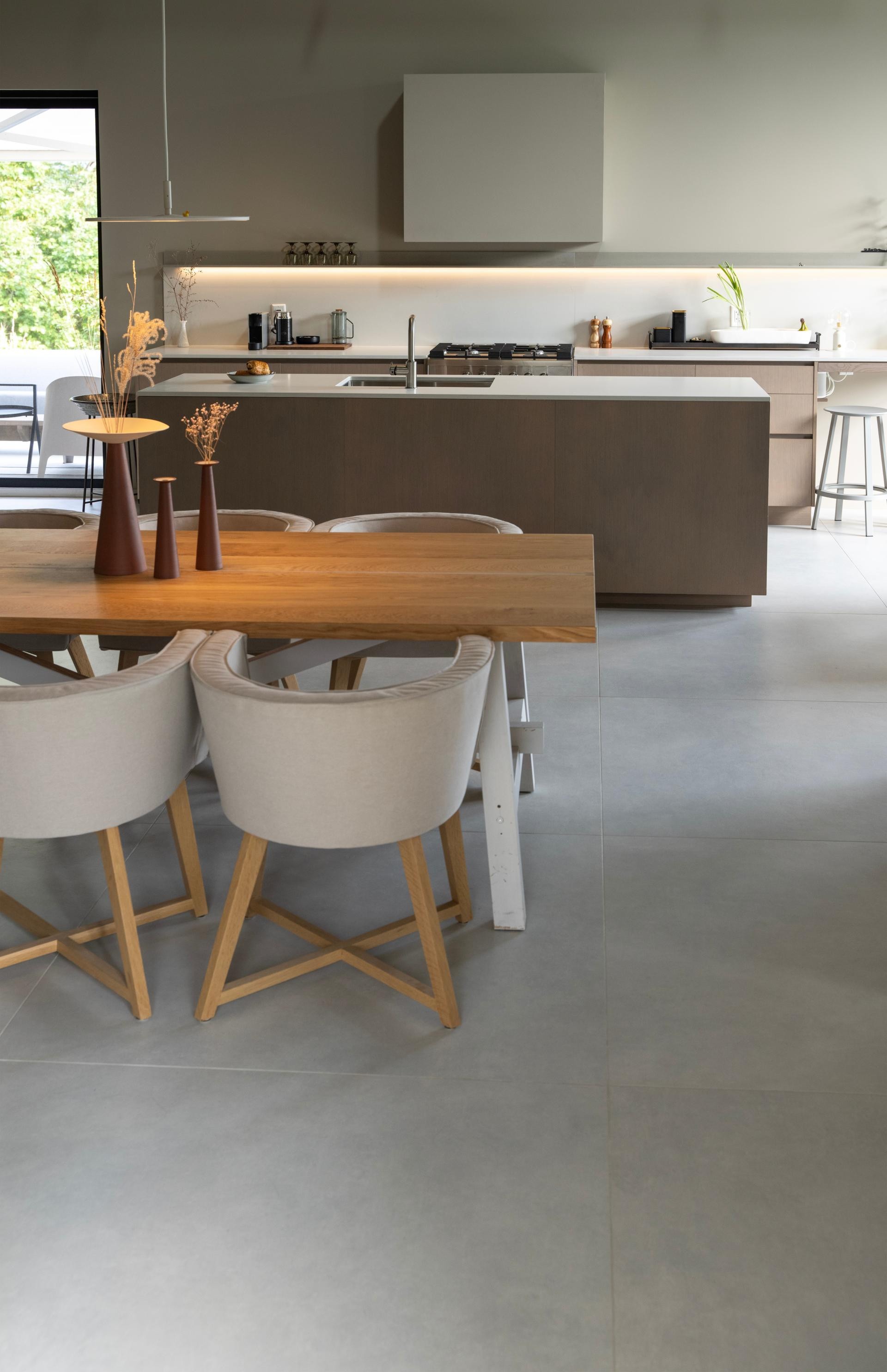 "Ovdje imamo našu oazu mira. Svaki je prostor osmišljen da bude ugodan za život i jednostavan za održavanje" rekla je ponosna vlasnica Caroline. Unutrašnjost krasi keramička kolekcija Glocal u formatu 48 x 48 centimetara, koja prostorima daje vizualni kontinuitet i olakšava svakodnevno čišćenje. Za vanjski prostor i obrub bazena korištene su pločice istog dizajna, ali u manjem formatu, s protukliznim završnim slojem koji osigurava sigurnost, ali i zadržava estetiku.