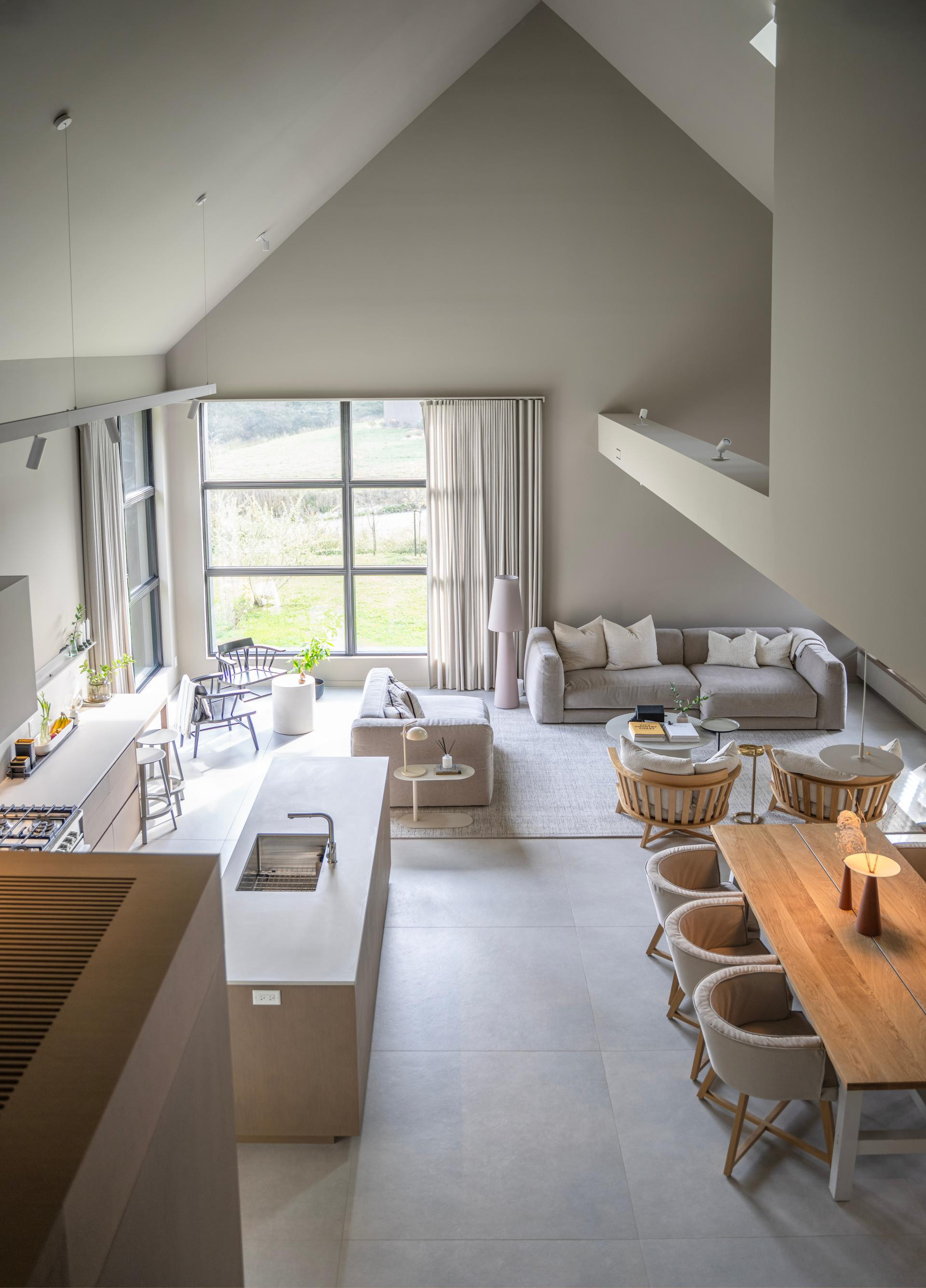 Par ne skriva koliko vole ugostiti prijatelje i obitelj, zbog čega su već u fazi projektiranja predvidjeli multifunkcionalne prostore. Posebno se ističe takozvana hibridna soba, koja se danju koristi kao dnevni boravak, a noću se pretvara u spavaću sobu pomoću jednostavnog sustava zavjesa. "Htjeli smo prostor koji je topao i gostoljubiv, ali i koji svakodnevno možemo koristiti kad smo sami" objasnila je Caroline.