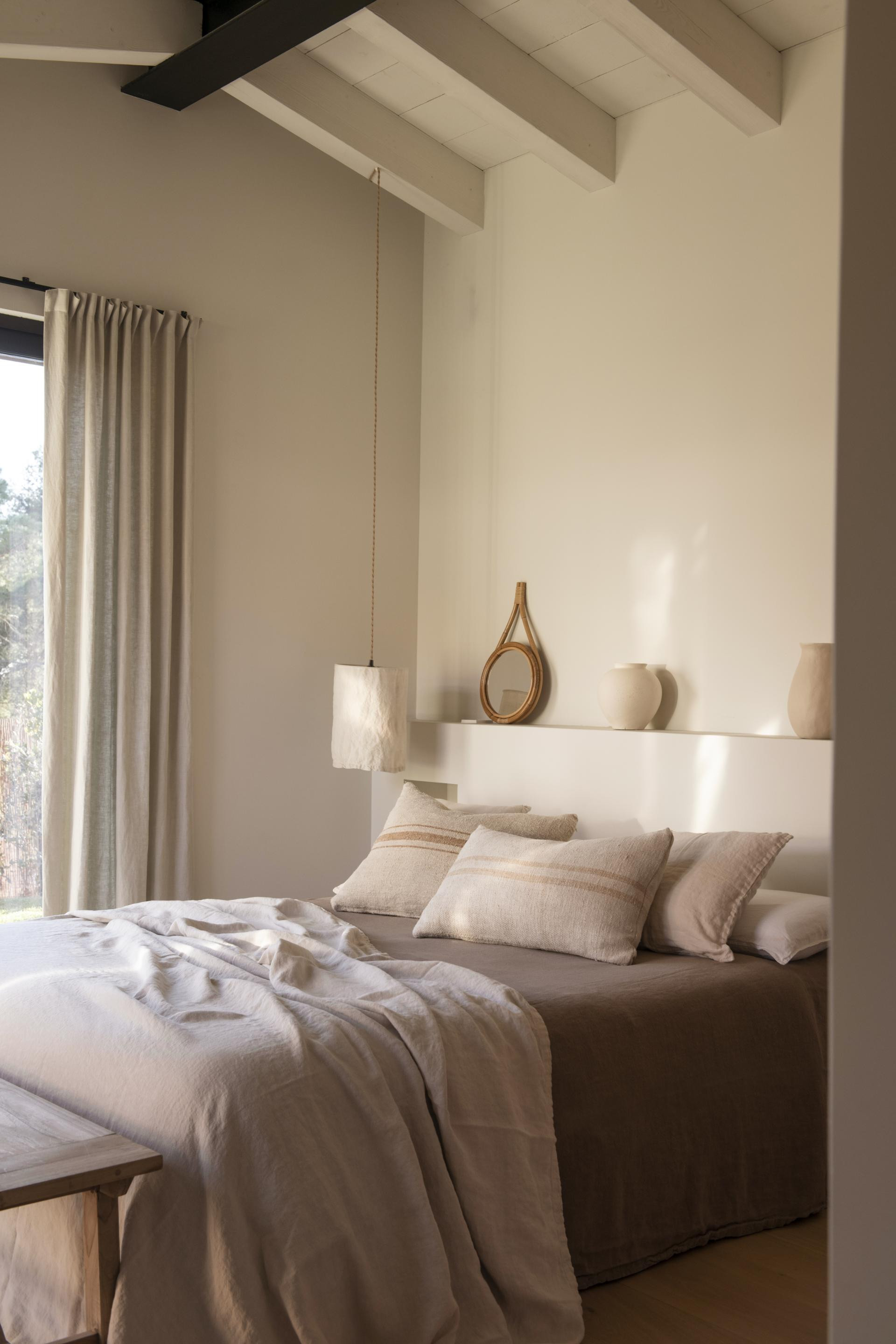 Noćni dio predstavlja poziv na odmor. Spavaće sobe, s minimalističkim namještajem po mjeri koji je dizajnirao D’Aussy Interiors, imaju izravan izlaz na vanjski prostor. Integrirana uzglavlja s nišama umjesto noćnih ormarića te zavjese od prirodnih tkanina pune visine dodatno naglašavaju smirenu estetiku projekta. Mediteranska esencija suptilno se provlači kroz svaku spavaću sobu i kupaonicu.