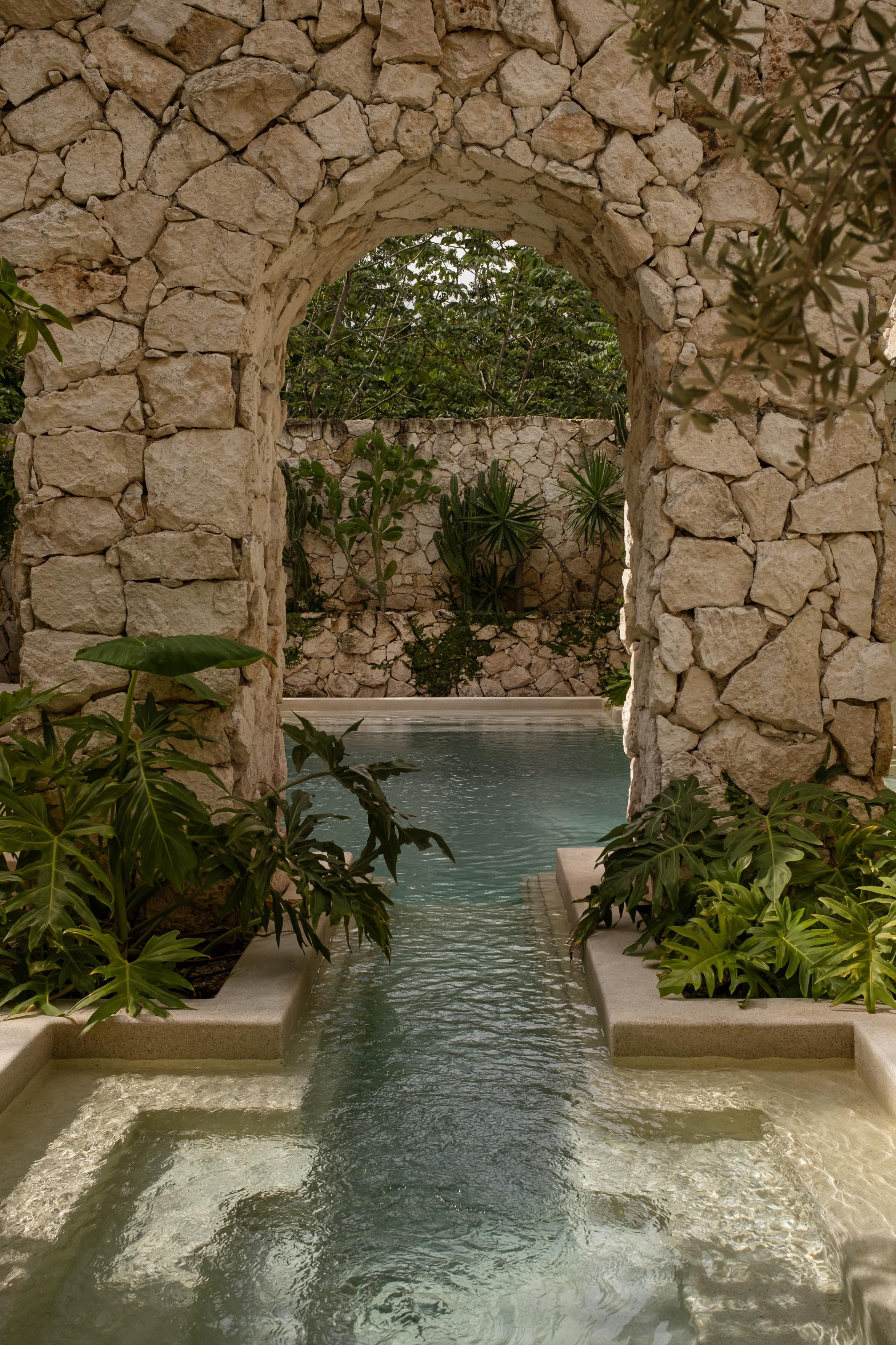 Arhitektonski pristup inspiriran je estetikom ruševina i filozofijom wabi-sabi, koja slavi nesavršenost, tišinu i prolaznost. Volumeni od kamena i prirodnih materijala poput Chukuma, tradicionalnog premaza izrađenog od vapna i biljnog soka, raspoređeni su poput ostataka drevnog naselja koje je priroda ponovno prigrlila. Vremenom će ih zelenilo prekriti još dublje, fasade će izgubiti oštrinu, a zgrada će starjeti u skladu s okolišem, postajući gotovo nevidljiv dio krajolika.