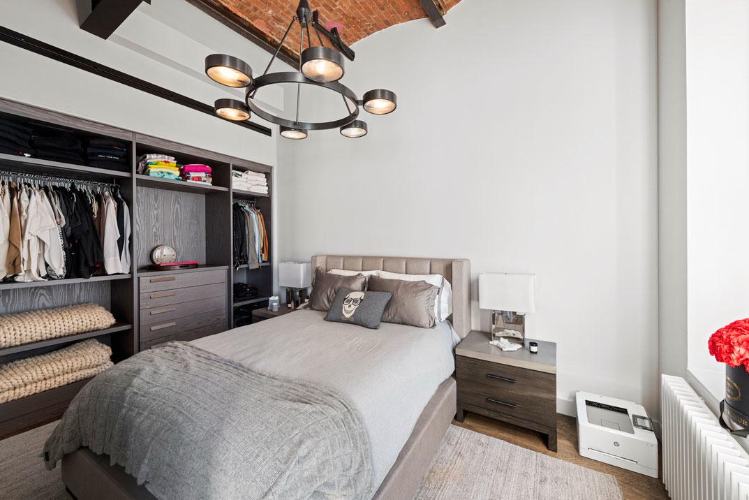 Prozračni stan krase drveni podovi, stropovi zasvođeni crvenom ciglom, atraktivna rasvjetna tijela, istaknuti metalni stupovi i grede. I, kao što ste sigurno očekivali, mnogo ugradbenih ormara.