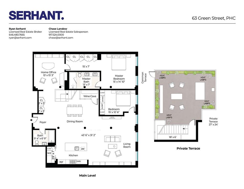 Otvorena društvena zona sastoji se od dnevne sobe s ugrađenom zidnom jedinicom i puno polica, i odvojenog prostora za blagovanje, a tu je i zatvorena staklena vinska soba s kontroliranom temperaturom za smještaj finih 100 boca. Kuhinja je opremljena otokom i barskim stolicama, dok su radne plohe od crnog mramora.