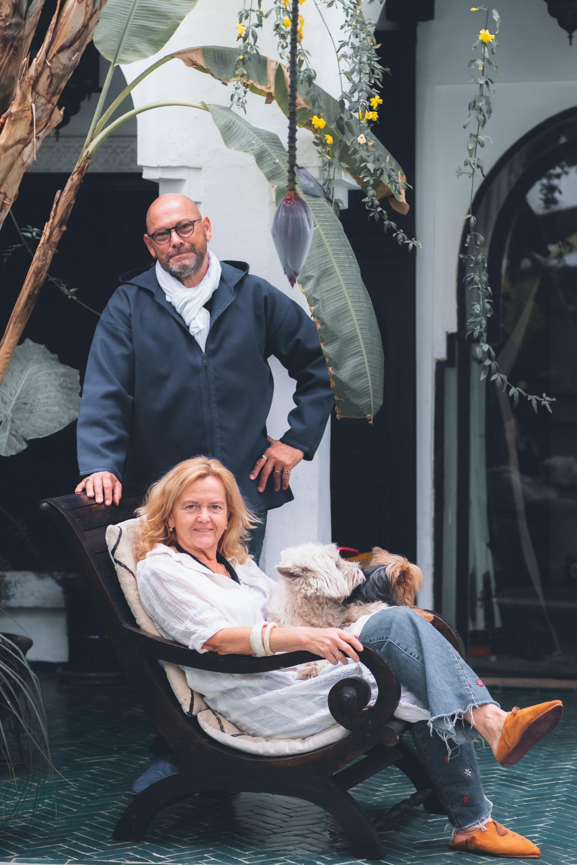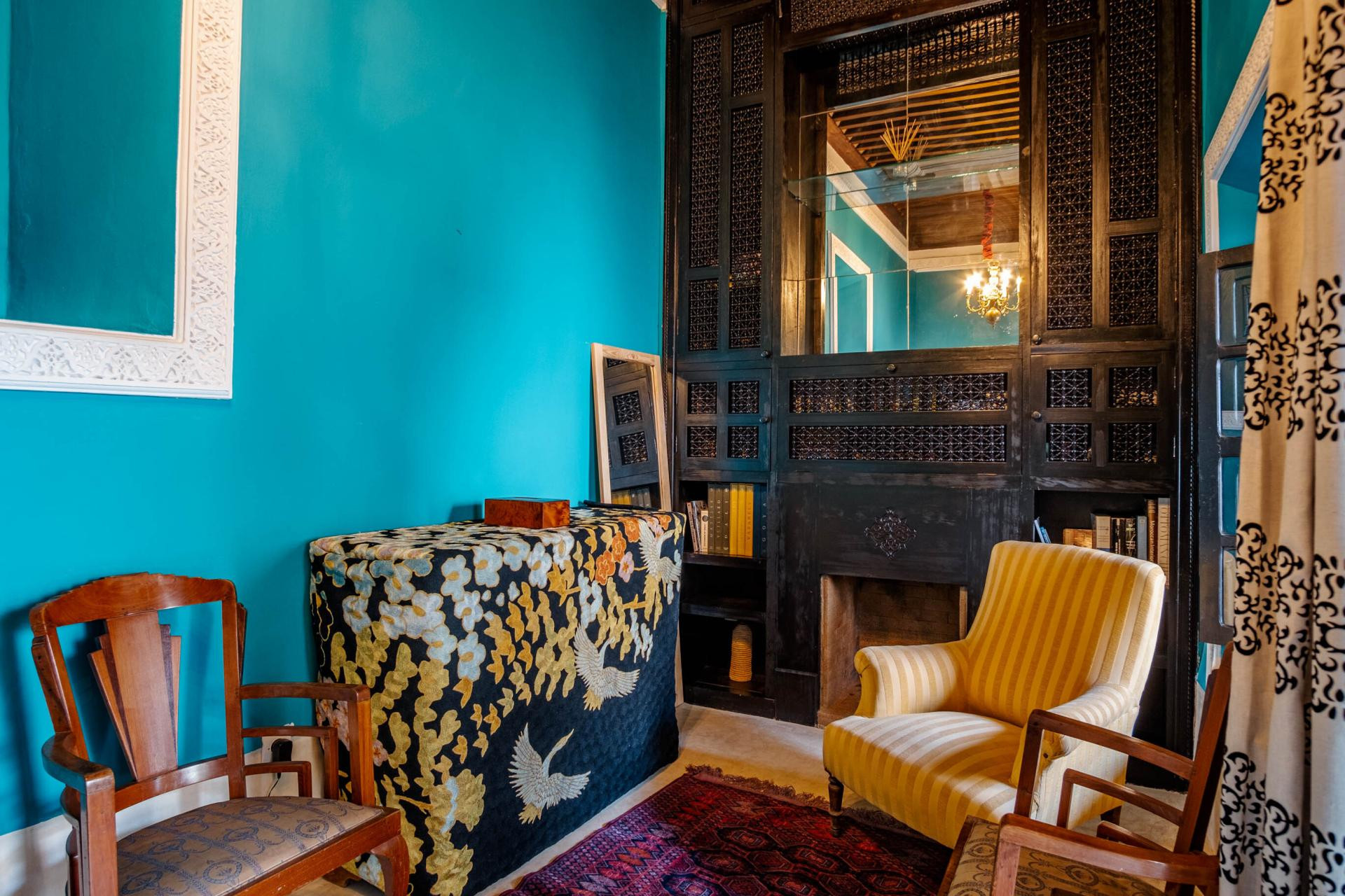 Pokušali su objediniti sve kulture, od berberske, arapske, europske, subsaharske i ukomponirati ih u skladnu cjelinu. Namještaj je lokalni i stari secesijski (potječe iz Indije i prijašnji vlasnik namještaja ga je kupio od nekog Francuza koji ga je donio u Marakeš krajem 30-ih godina prošlog stoljeća). Ostalo su umjetnine, vaze, lampe... Puno toga su kupili i na Bab El Khemisu, marakeškom Hreliću, prepunom umjetnina i antikviteta.