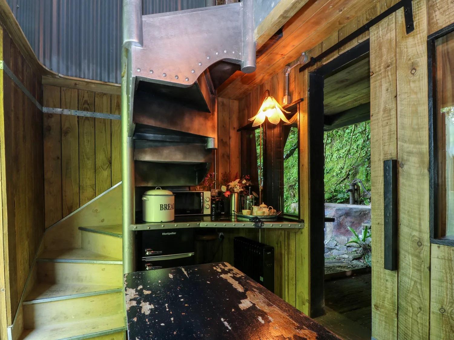 Popevši se na prvi kat, možete se opustiti u ugodnom prostoru ispred električnog kamina, s prekrasnim pogledom na okolnu šumu. Na trećem katu je privatna košnica, opremljena velikim krevetom, debelim krznenim pokrivačima i prozorčićem. Metalna kupaonica je industrijskog dizajna, s otkrivenim cijevima i limovima, kao i pogledom na izloženo kamenje kroz tuš prozor. Ali prava je poslastica na terasi, gdje je udubljena hidromasažna kada skrivena među zelenilom – što vam daje priliku za nezaboravno kupanje na otvorenom.