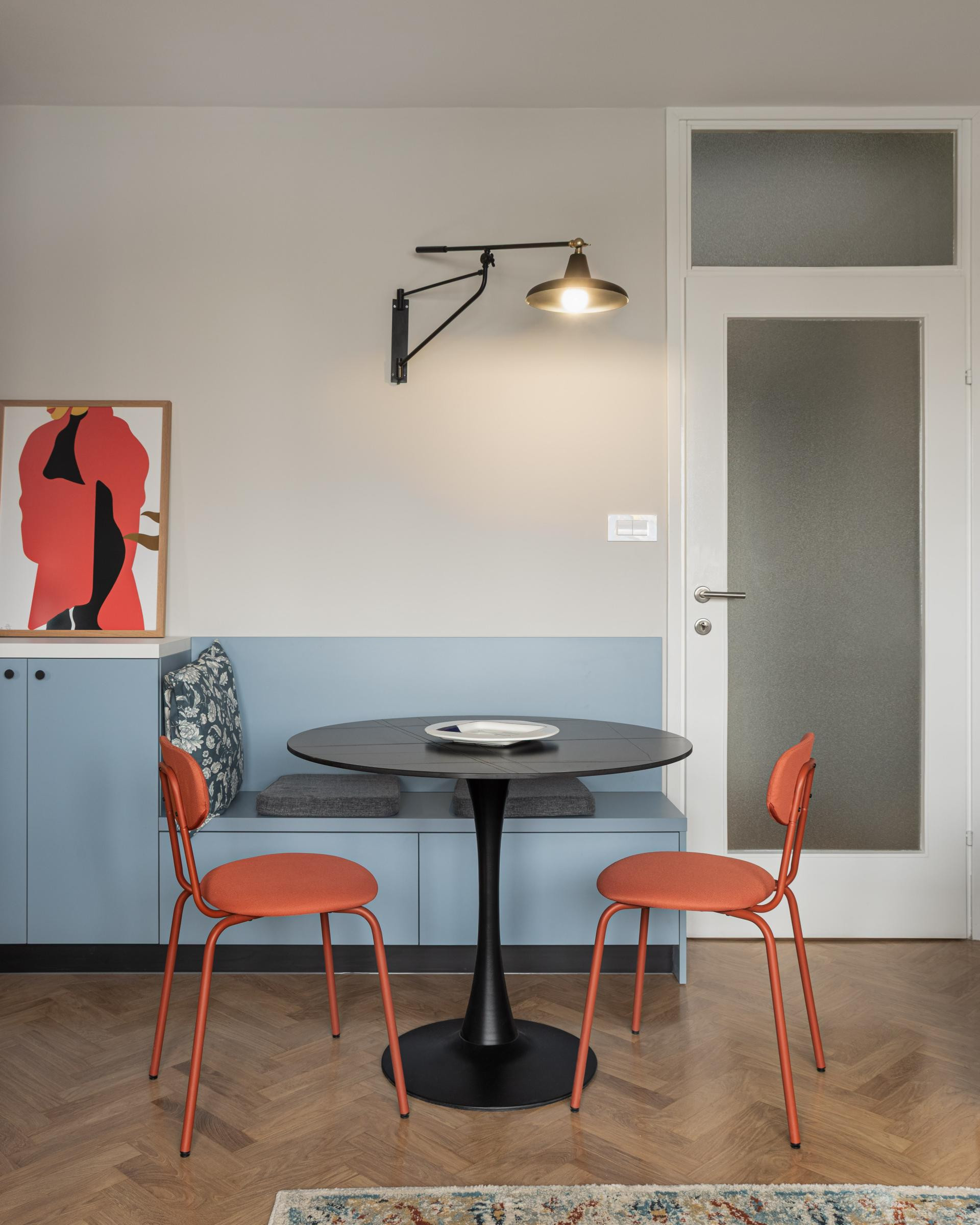 - Akcent cijelog stana zapravo je stolarsko rješenje klupe u blagovaonici, koja se neprimjetno proteže u kuhinju bez vizualnih ograničenja i osjećaja skučenosti. Zaobljenim kutom postigli smo otvorenost u tom dijelu, gdje smo i srušili pregradni zid, čime smo dobili otvoreniju kuhinju. Tako kuhinja više nije izdvojena prostorija, već integralni dio dnevnog prostora, a zahvaljujući razigranim bojama postala je i akcent stana - objašnjavaju arhitektice.