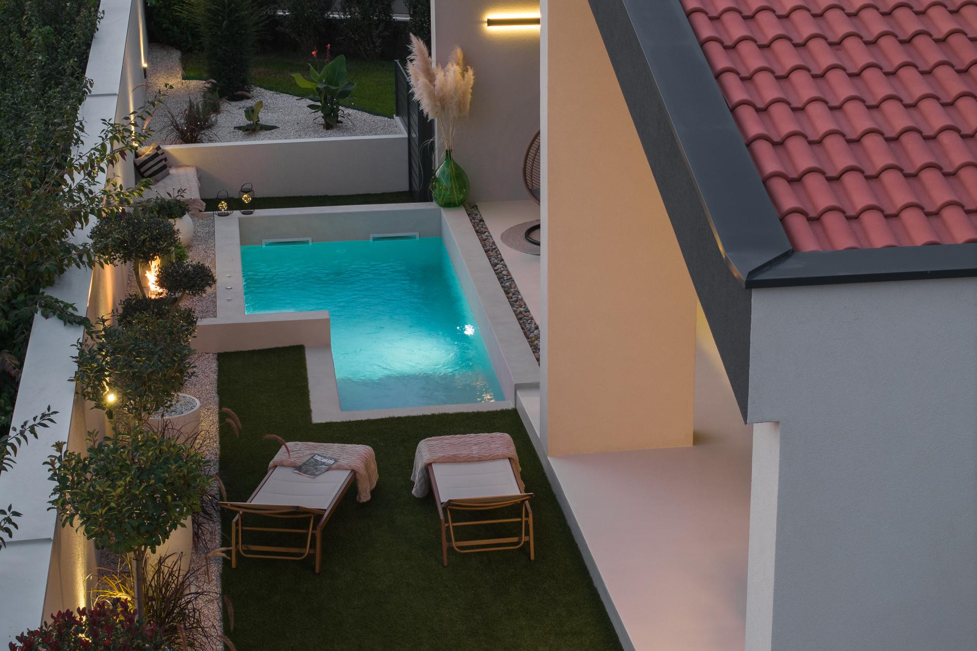 "Isprva mi je izgledalo gotovo nemoguće smjestiti na tako malom prostoru čak dva bazena - unutarnji i vanjski - zajedno sa saunom, jacuzzijem i komfornim interijerom. No, sve se savršeno poklopilo i detaljno je osmišljeno, tako da svaki kutak kuće ima svoju funkciju, a prostor ostaje prozračan, intiman i luksuzan", ističe vlasnica.